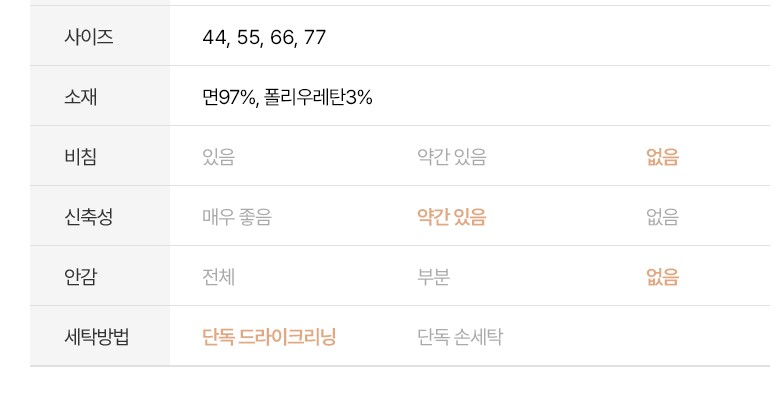 | 1. 제품 소재 (섬유의 조성 또는 혼용률을 백분율로 표시, 기능성인 경우 성적서 또는 허가서) | 면97%,폴리우레탄3% |