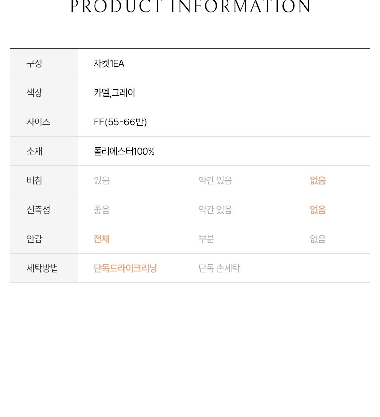 2. 색상 | 카멜,그레이 |