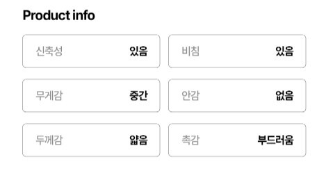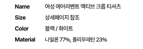 | 1. 제품 소재 (섬유의 조성 또는 혼용률을 백분율로 표시, 기능성인 경우 성적서 또는 허가서) | 상품상세참조 |