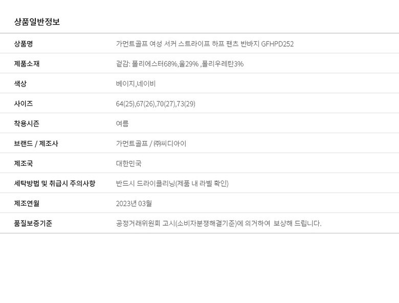 가먼트골프 여성 서커 스트라이프 하프 팬츠 반바지 GFHPD252