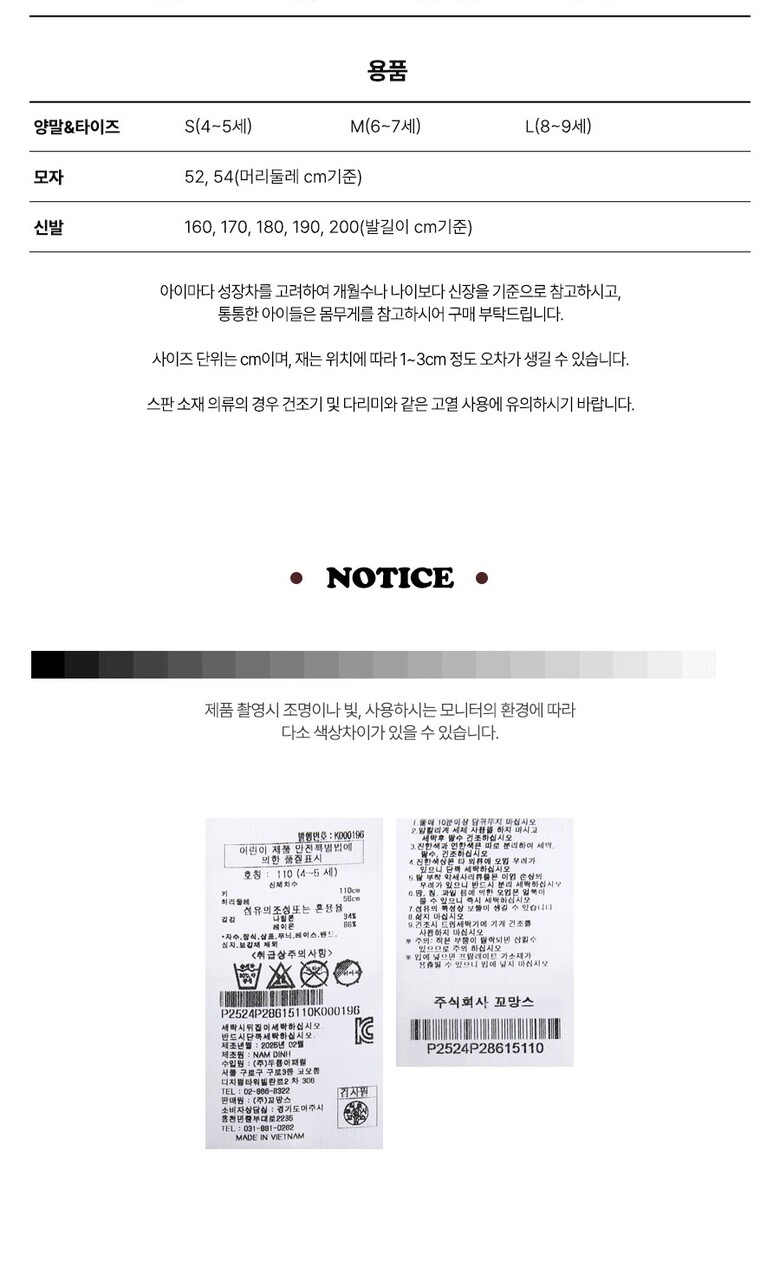 | 6. 세탁방법 및 취급시 주의사항 | 상품상세참조 |