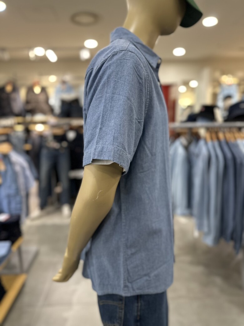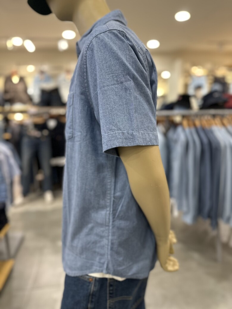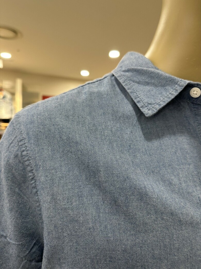 미디엄블루 컬러로 왼쪽 가슴부분에 포켓이 있는