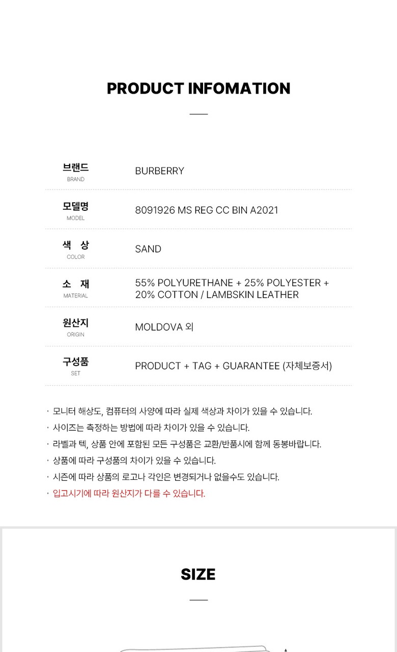 2. 소재 | 폴리우레탄 55% + 폴리에스터 25% + 코튼 20% / 양가죽 |