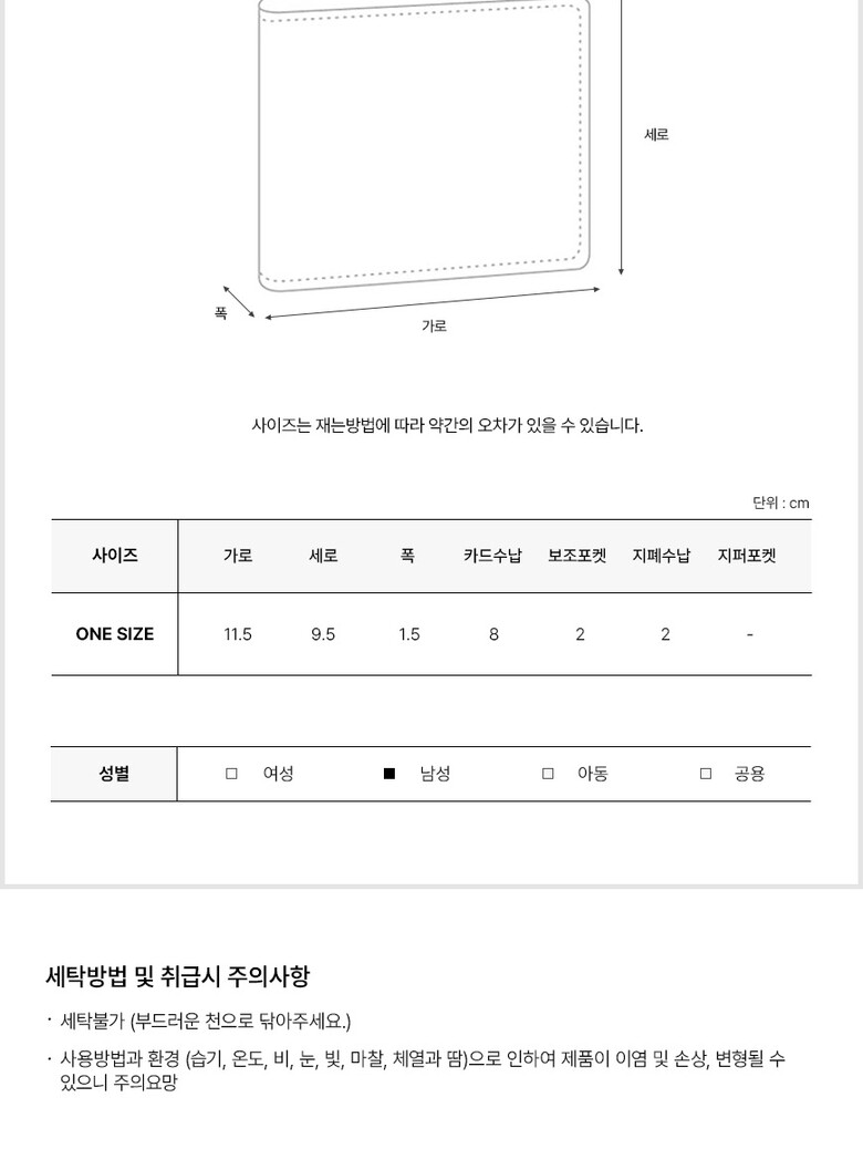 3. 치수 | 가로 11.5cm X 세로 9.5cm X 폭 1.5cm |