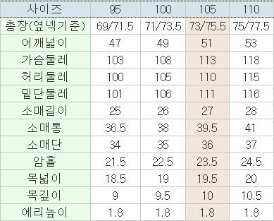 | 3. 치수 | 95,100,105,110 |