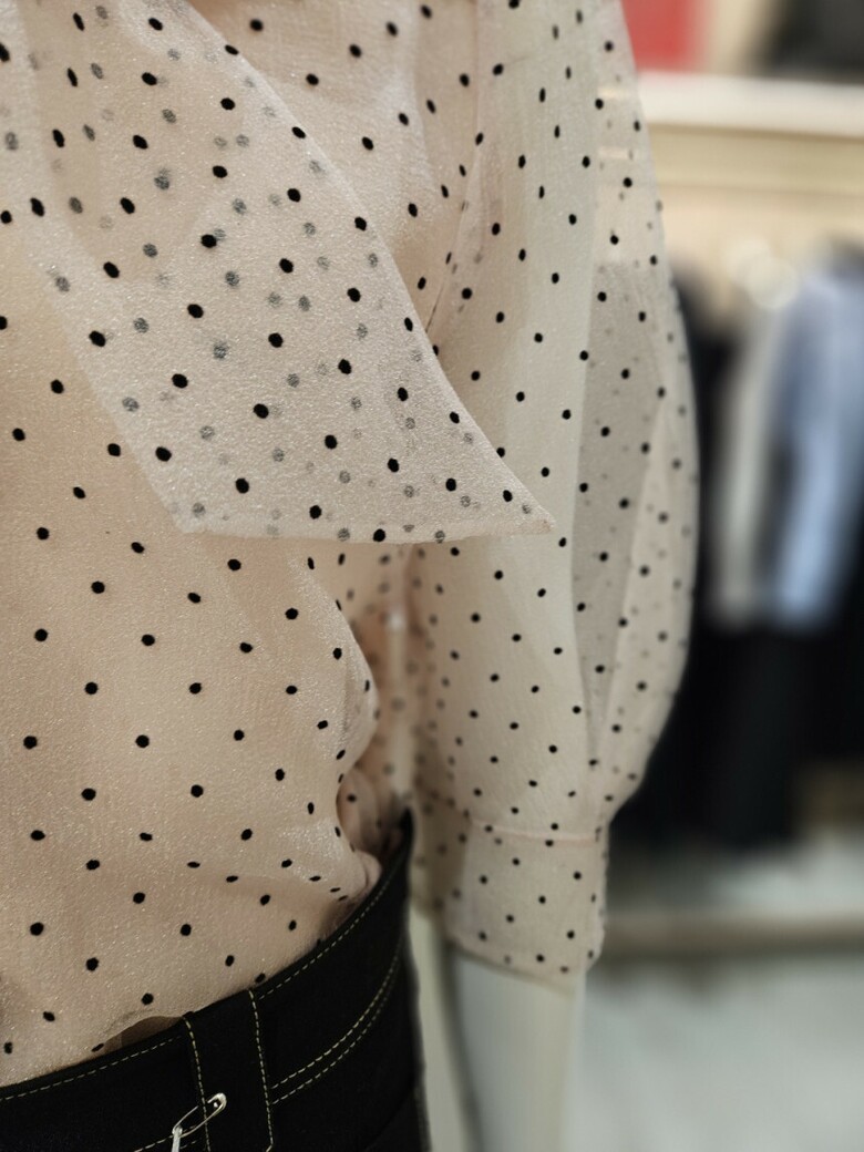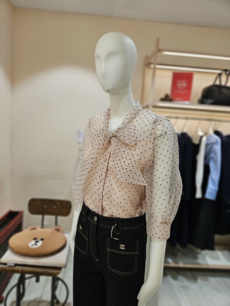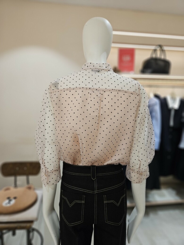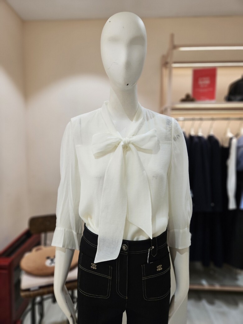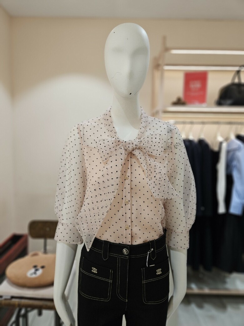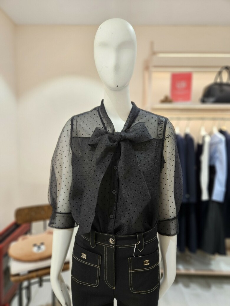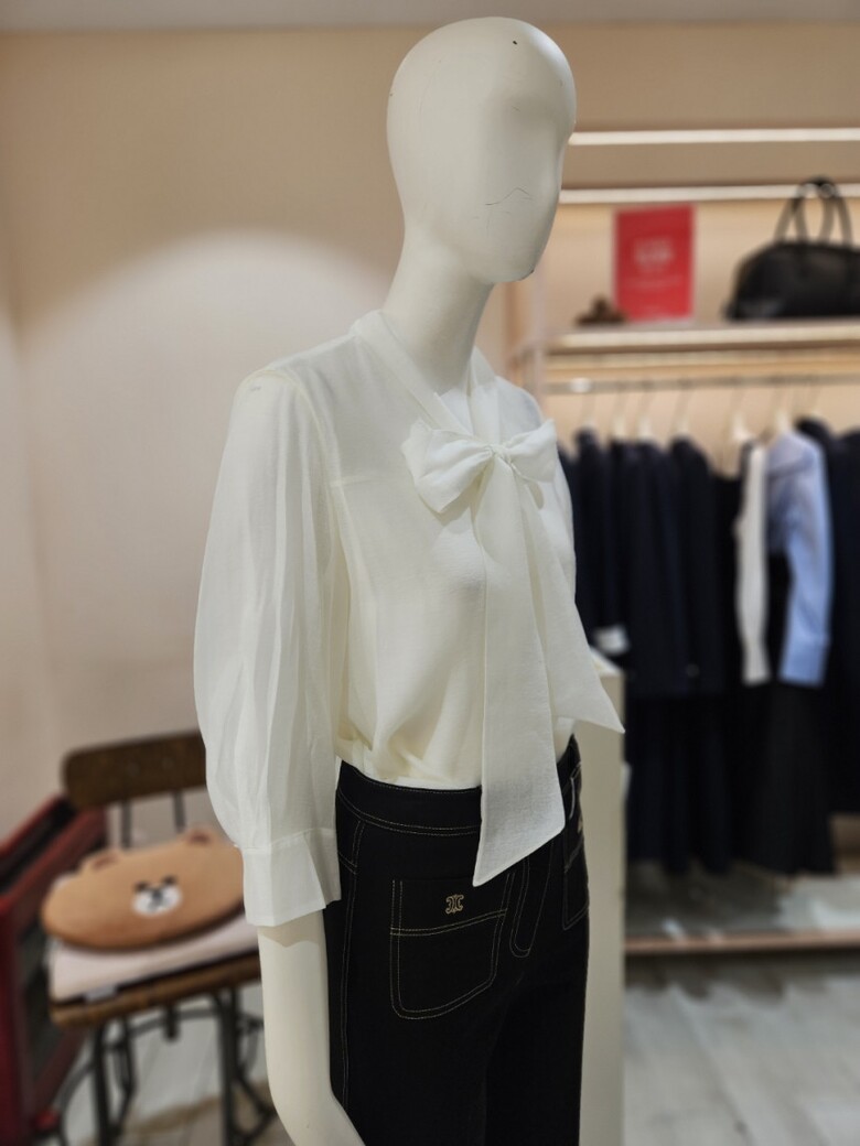 오간자 퍼프 타이넥 블라우스 GR4M0BL941