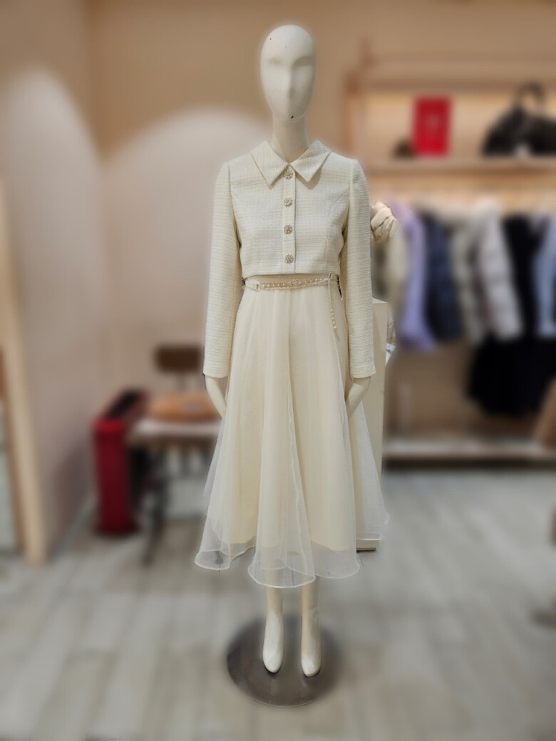 1. 제품 소재 (섬유의 조성 또는 혼용률을 백분율로 표시, 기능성인 경우 성적서 또는 허가서) 겉감:폴리에스테르 82%, 모 18% / 안감:폴리에스테르 100%, 레이스