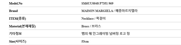 마르지엘라 목걸이 SM6UU0048 P7351 969 MM6 인그레이빙 넘버링 로고 링 남성목걸이 여성목걸이 당일발송