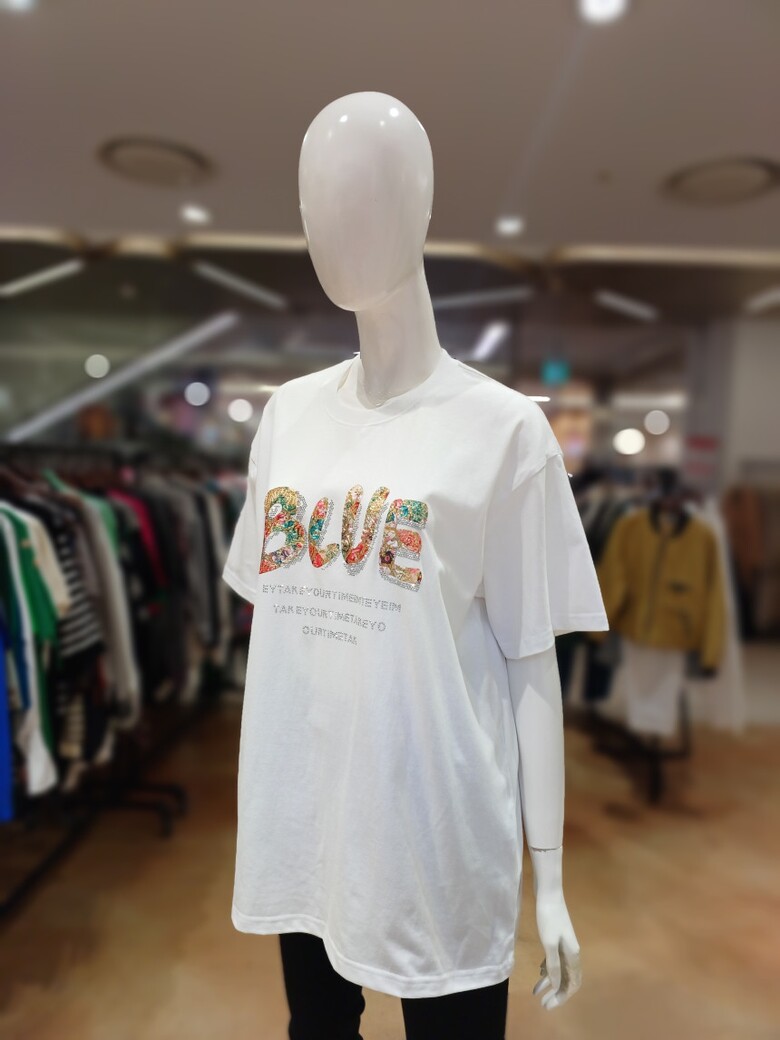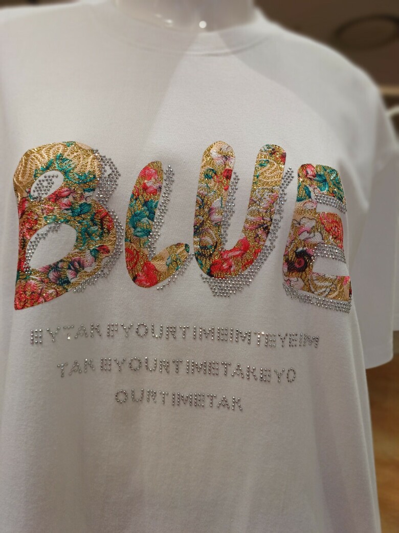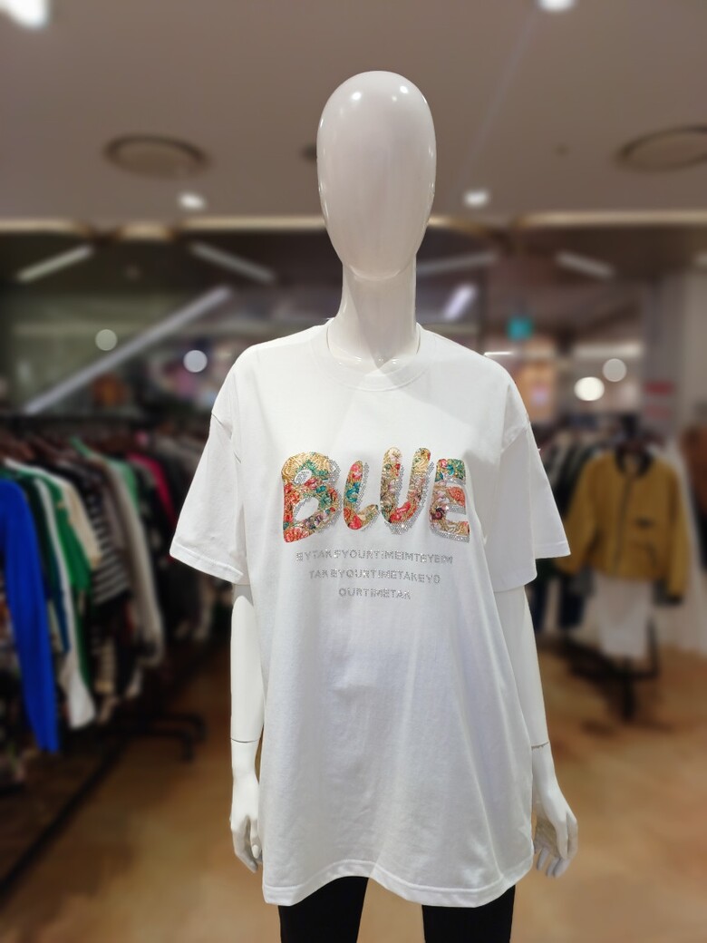 블루 자수 레터링 큐빅 를 포인트로 주어