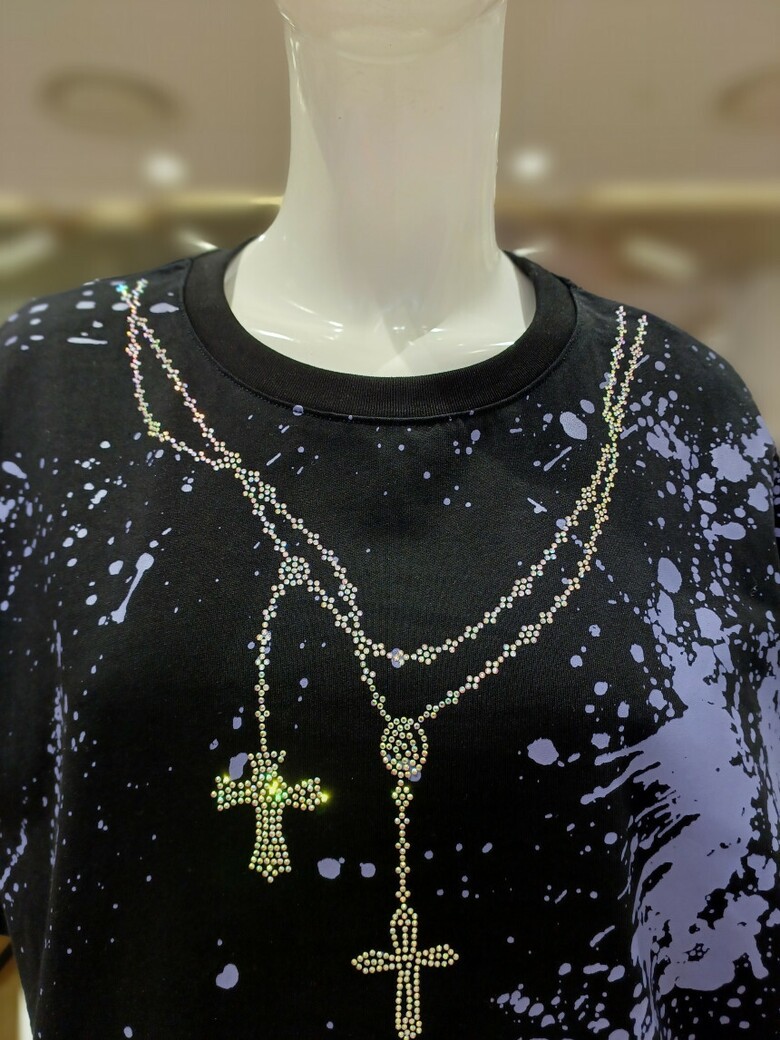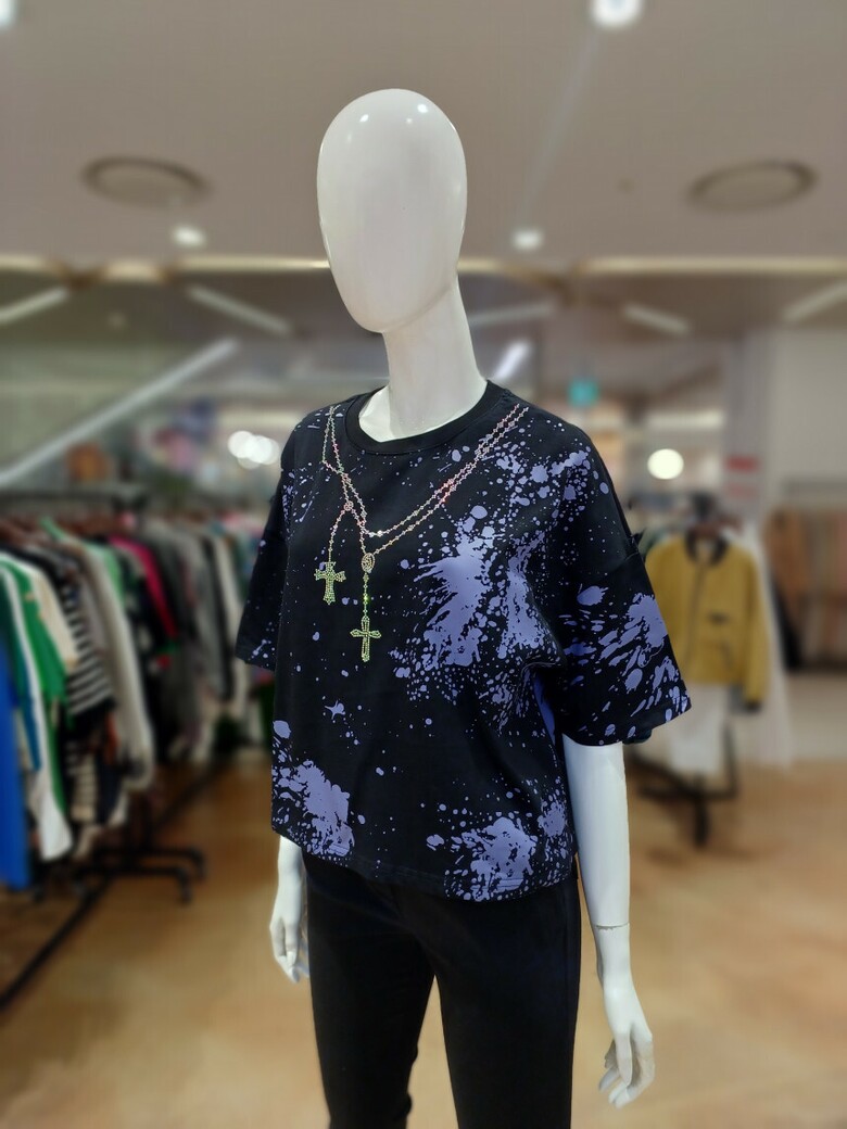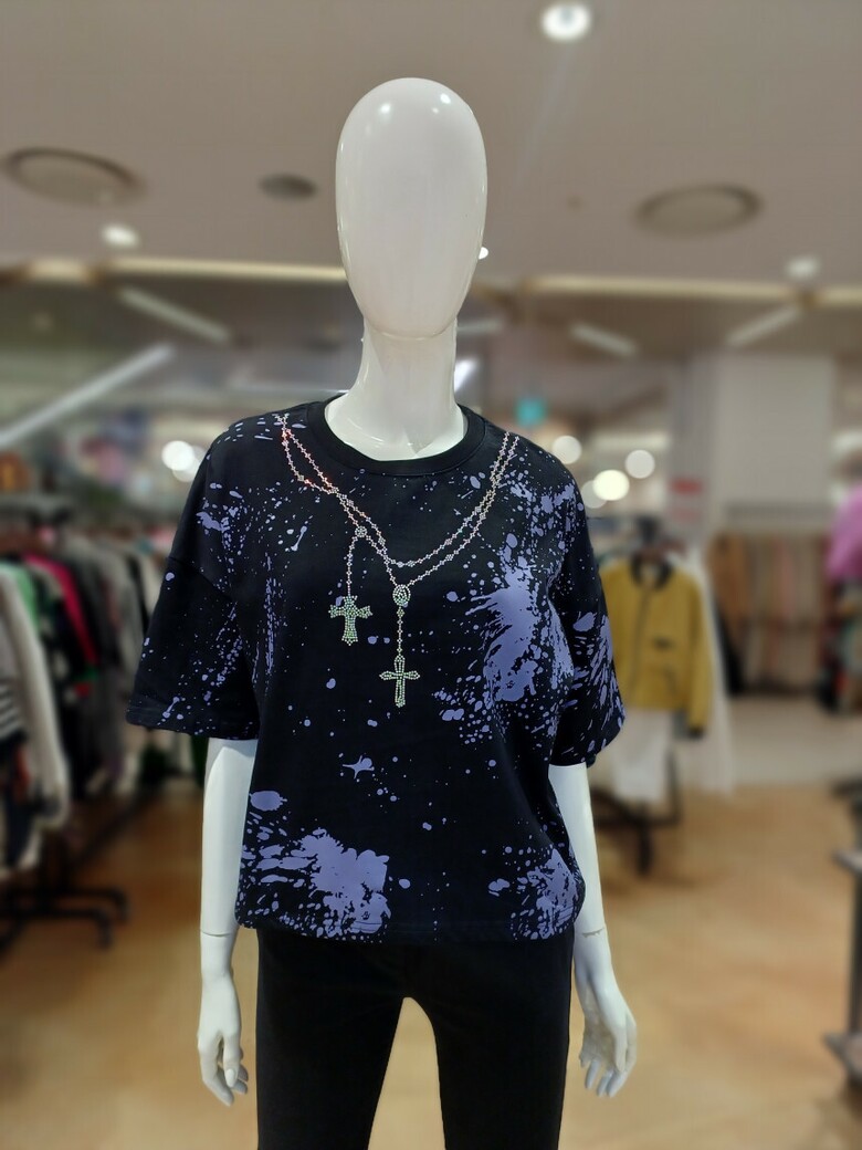 목걸이 비즈 네크랑인 페인팅 티셔츠 입니다