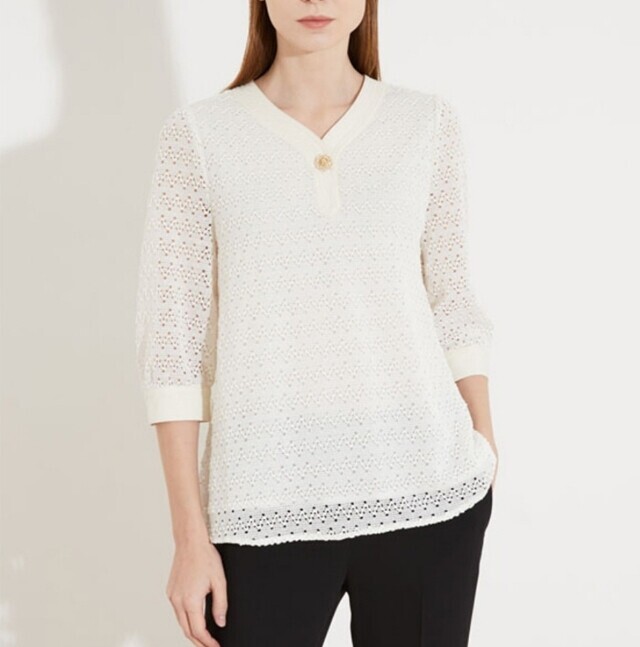 레이스 무늬가 예쁘네요. 여성스럽고 단아해 보여 좋아요. 올리비아로렌 제품이 멋스럽고 맘에 들어요.