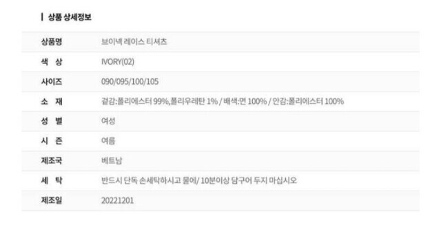 1. 제품 소재 (섬유의 조성 또는 혼용률을 백분율로 표시, 기능성인 경우 성적서 또는 허가서) 상품상세참조
