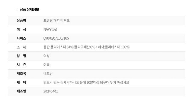 | 1. 제품 소재 (섬유의 조성 또는 혼용률을 백분율로 표시, 기능성인 경우 성적서 또는 허가서) | 상품상세참조 |