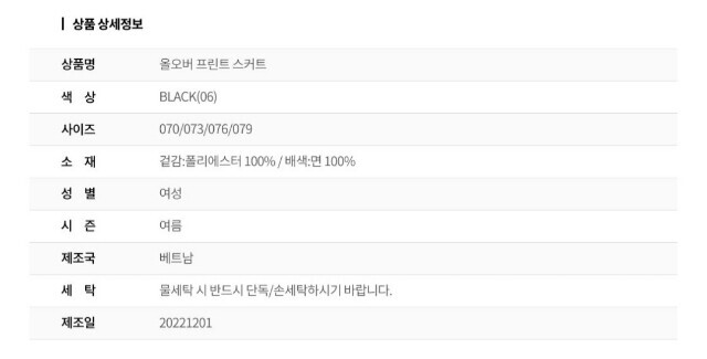 | 6. 세탁방법 및 취급시 주의사항 | 상품상세참조 |