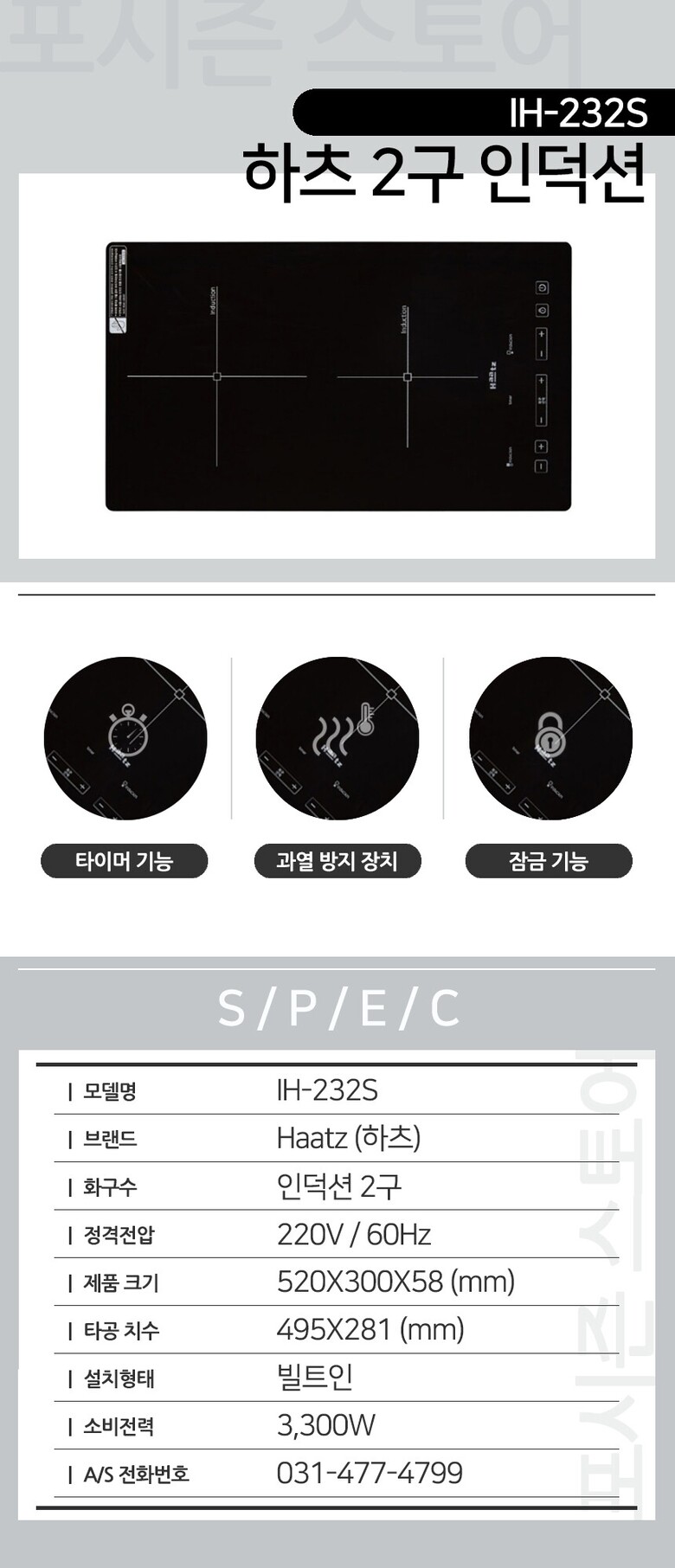 하츠 2구 빌트인 인덕션 쿡탑 IH-232S 매립형 전기레인지