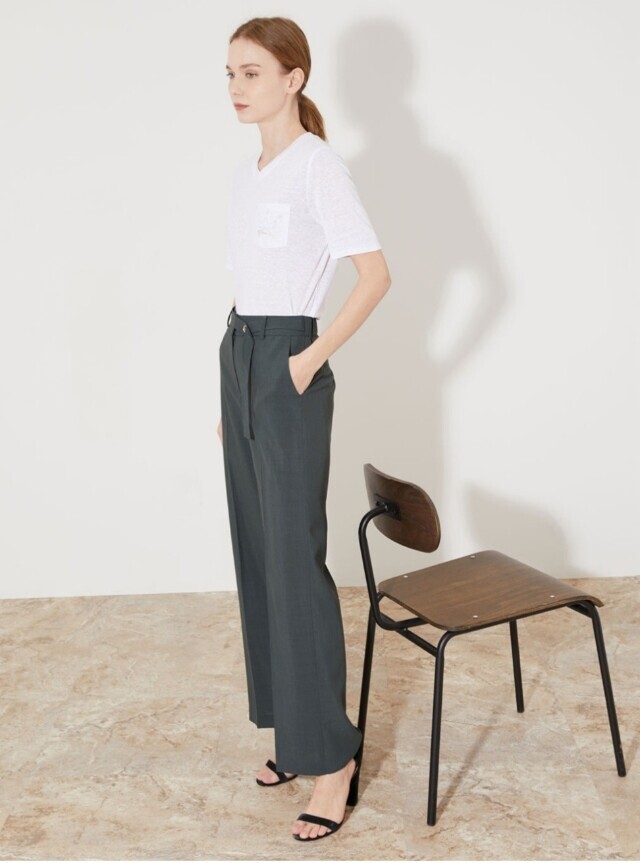 [올리비아로렌]벨트 포인트 와이드팬츠VOCDL3M4261