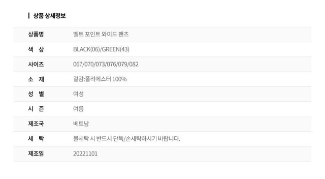 | 1. 제품 소재 (섬유의 조성 또는 혼용률을 백분율로 표시, 기능성인 경우 성적서 또는 허가서) | 상품상세참조 |