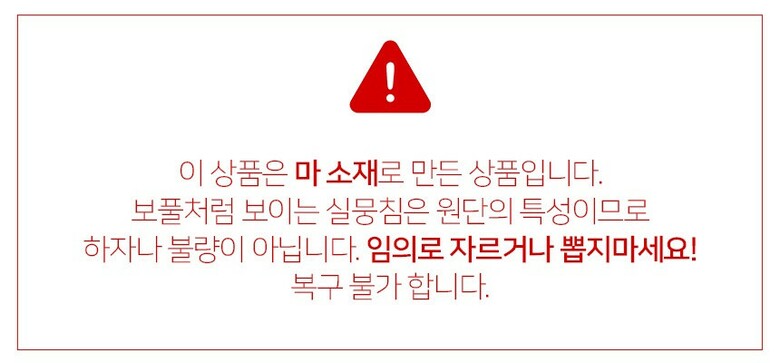 마 소재 특징상 실이 뭉쳐있는 부분이 있는데 이는 상품의 하자가 아닙니다
