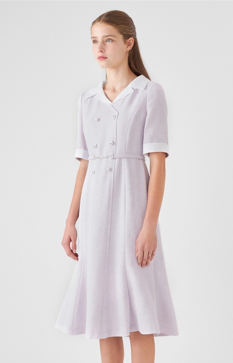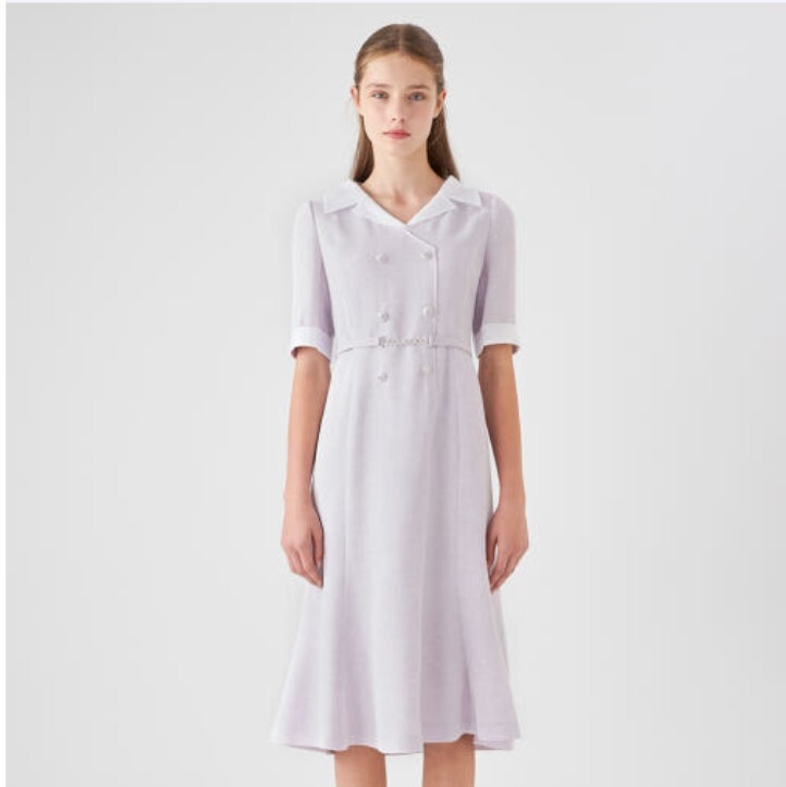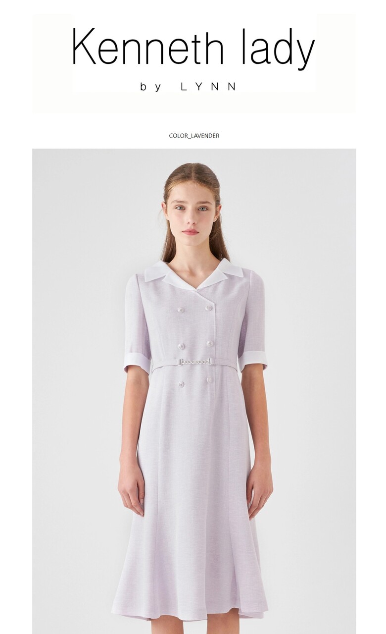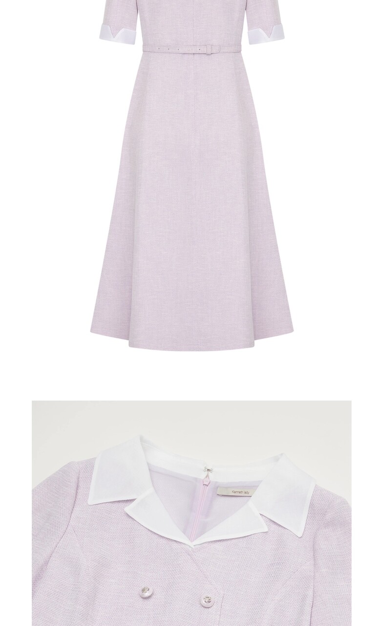 [케네스레이디] 트위드 더블버튼 카라 벨티드 원피스 EWOPOF1100