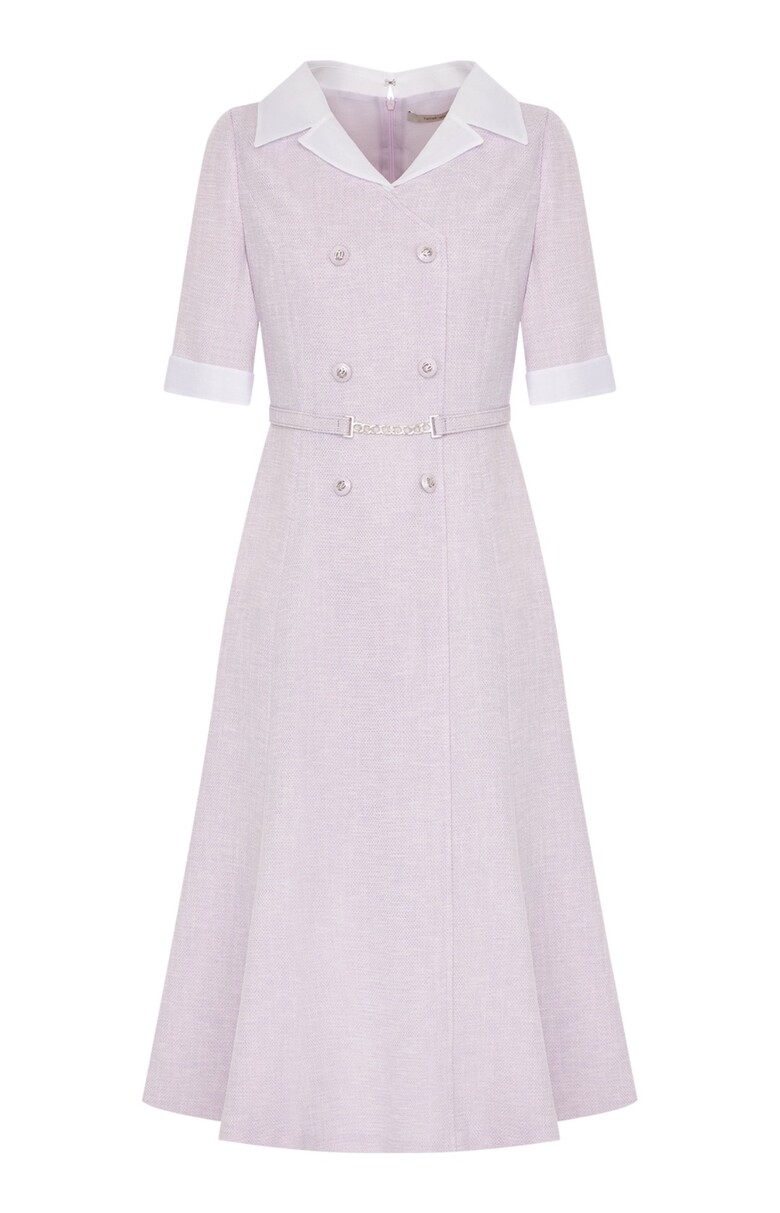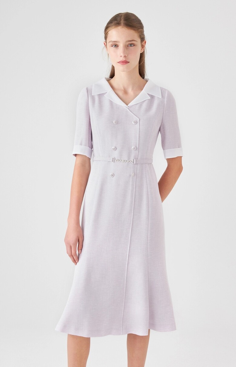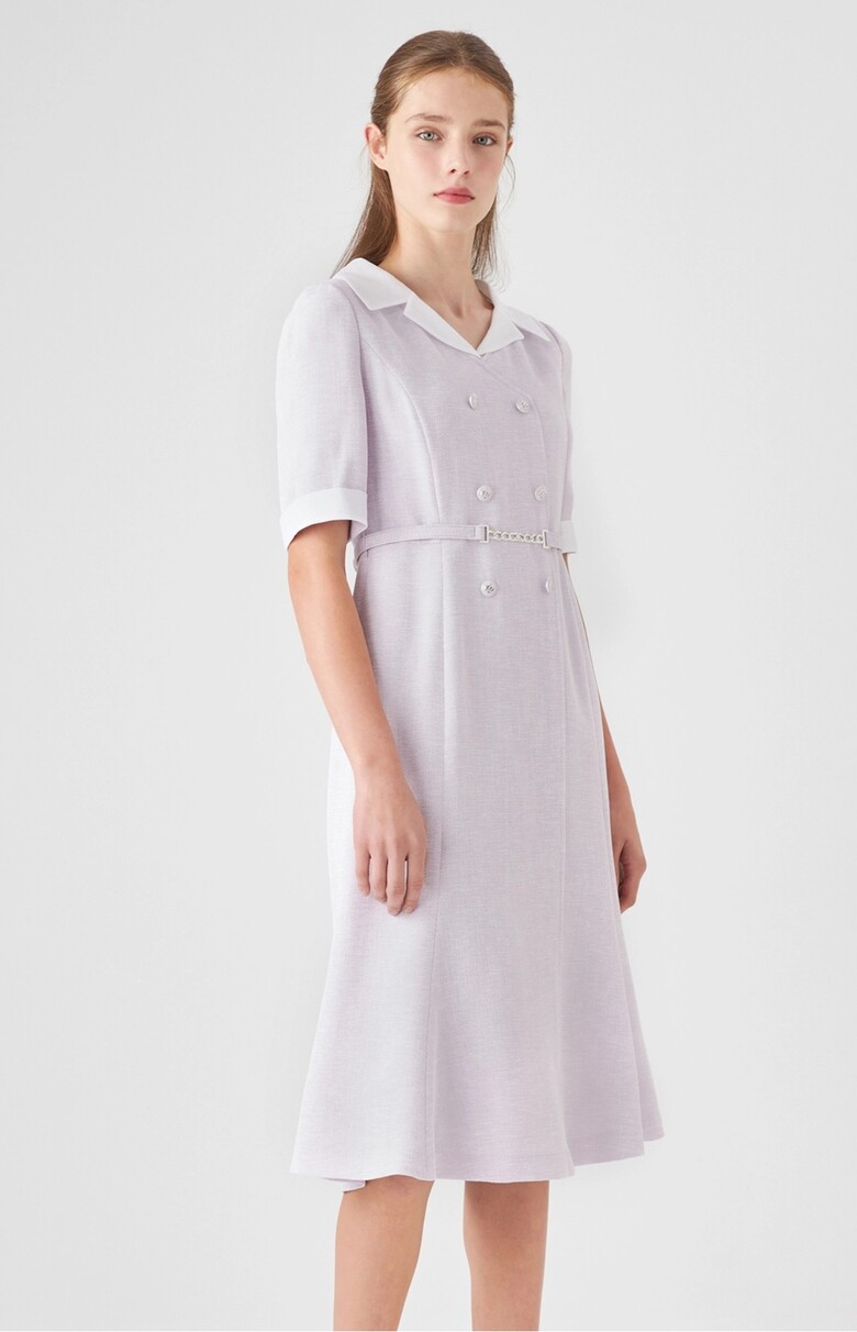 [케네스레이디] 트위드 더블버튼 카라 벨티드 원피스 EWOPOF1100