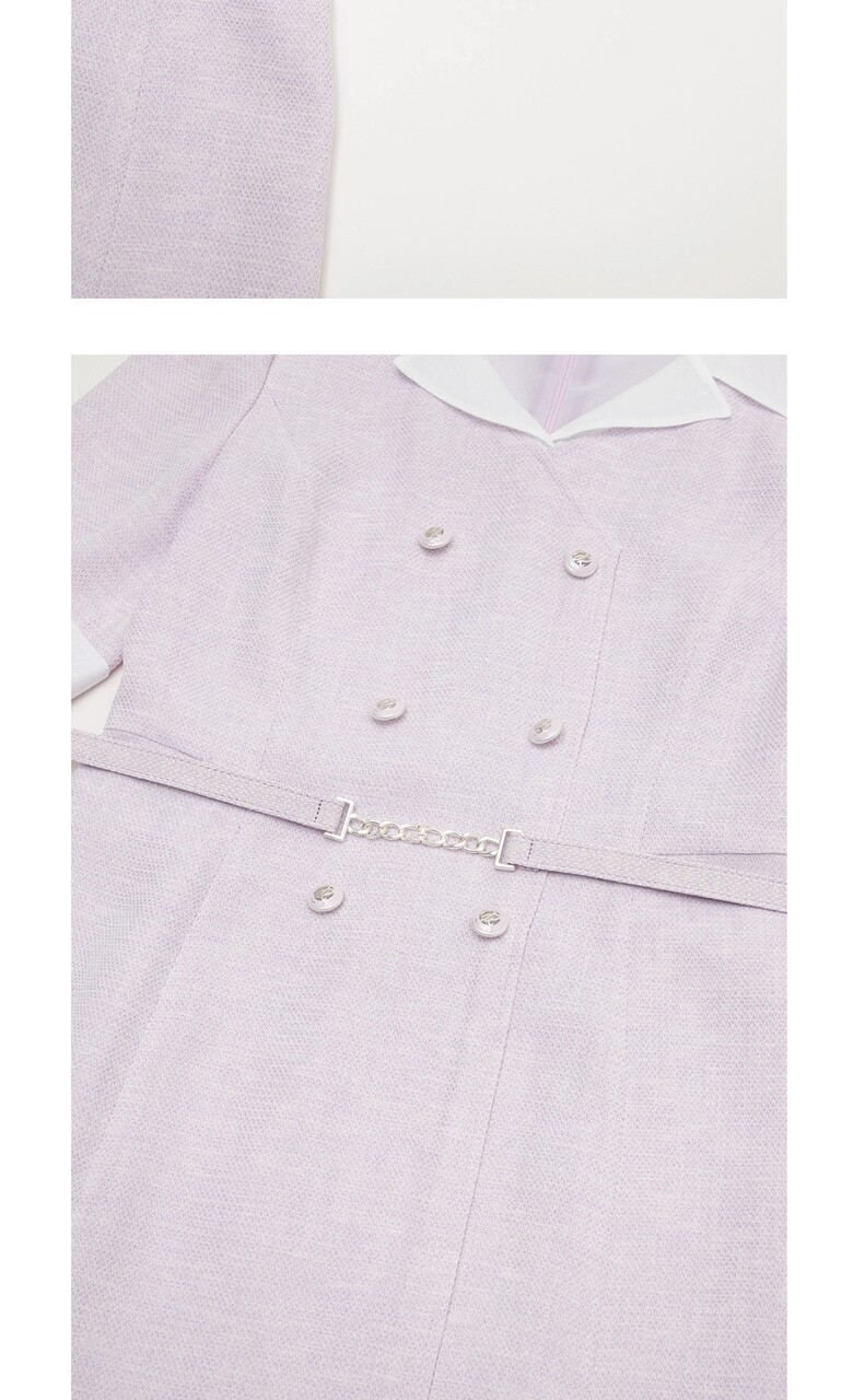 고급스러운 벨트 장식으로 웨이스트 라인을 잡아주어 페미닌한 실루엣이 연출되고|*|