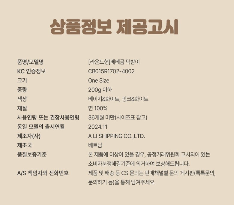 베베곰 라운드형 아기 턱받이 BGBRTB01