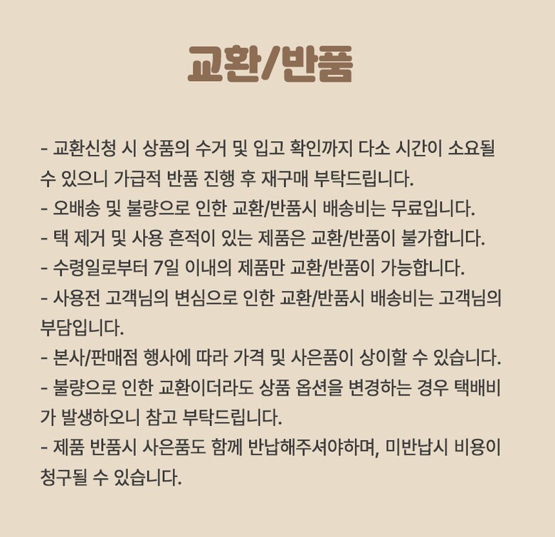 반품 유의사항