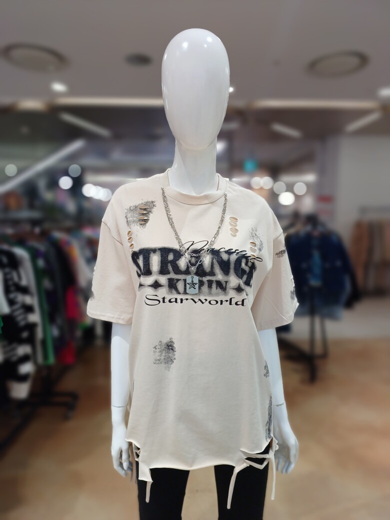 르니앤맥코이 빈티지 와싱 헤짐 목걸이장식 반팔 티셔츠MM04TS557