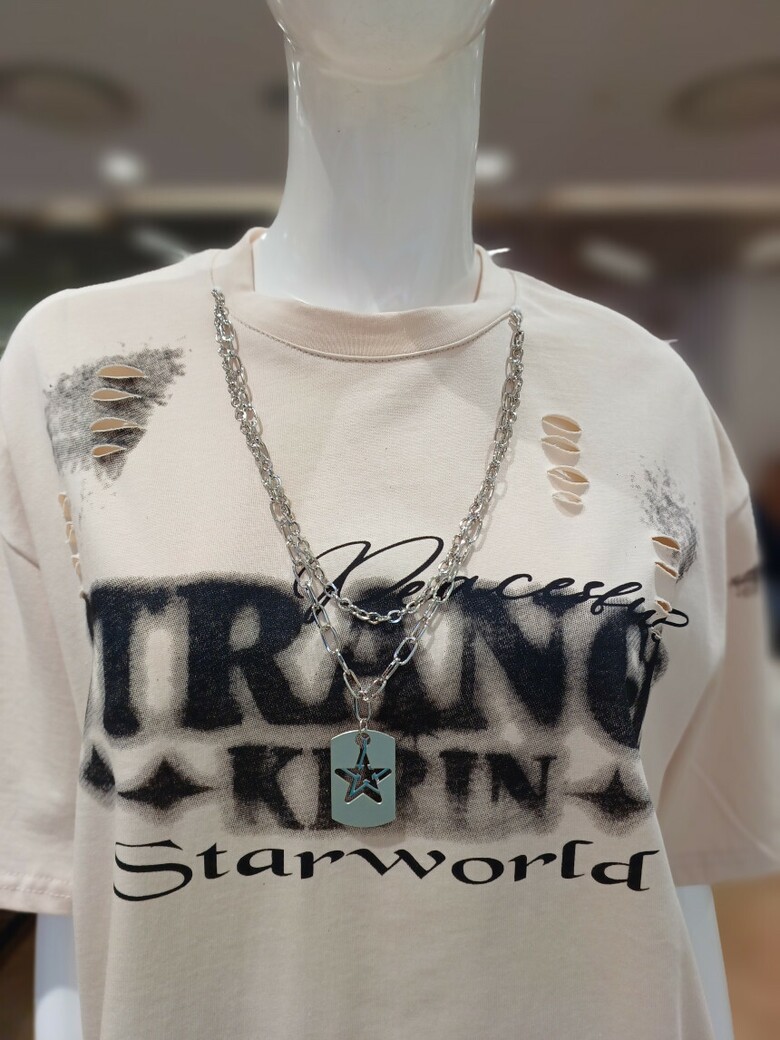 빈티지 와싱 헤짐 목걸이 장식 데미지