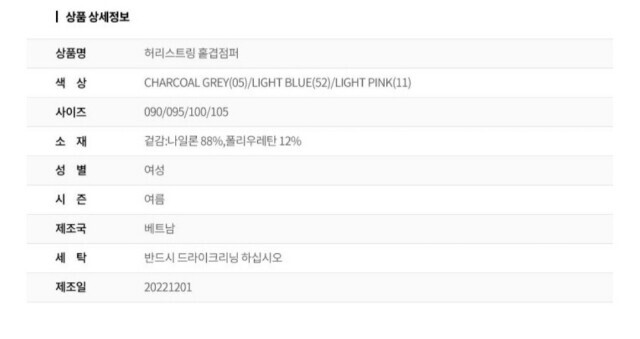 | 6. 세탁방법 및 취급시 주의사항 | 상품상세참조 |