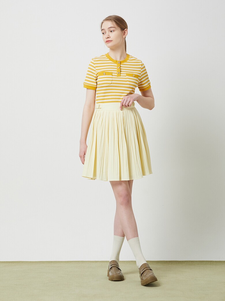 - 전판 스트라이프 패턴에 네크와 소매끝|*| 아웃 포켓에 배색을 더한