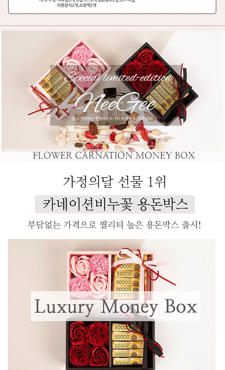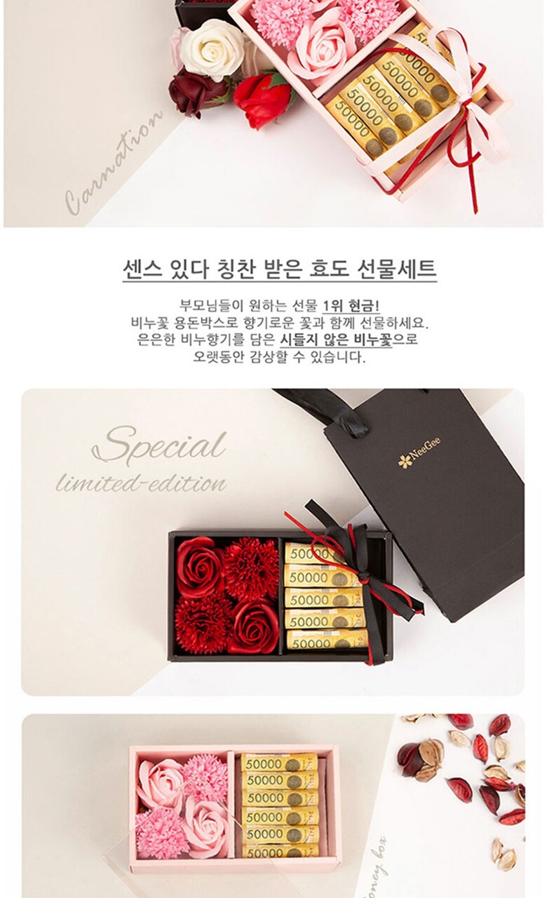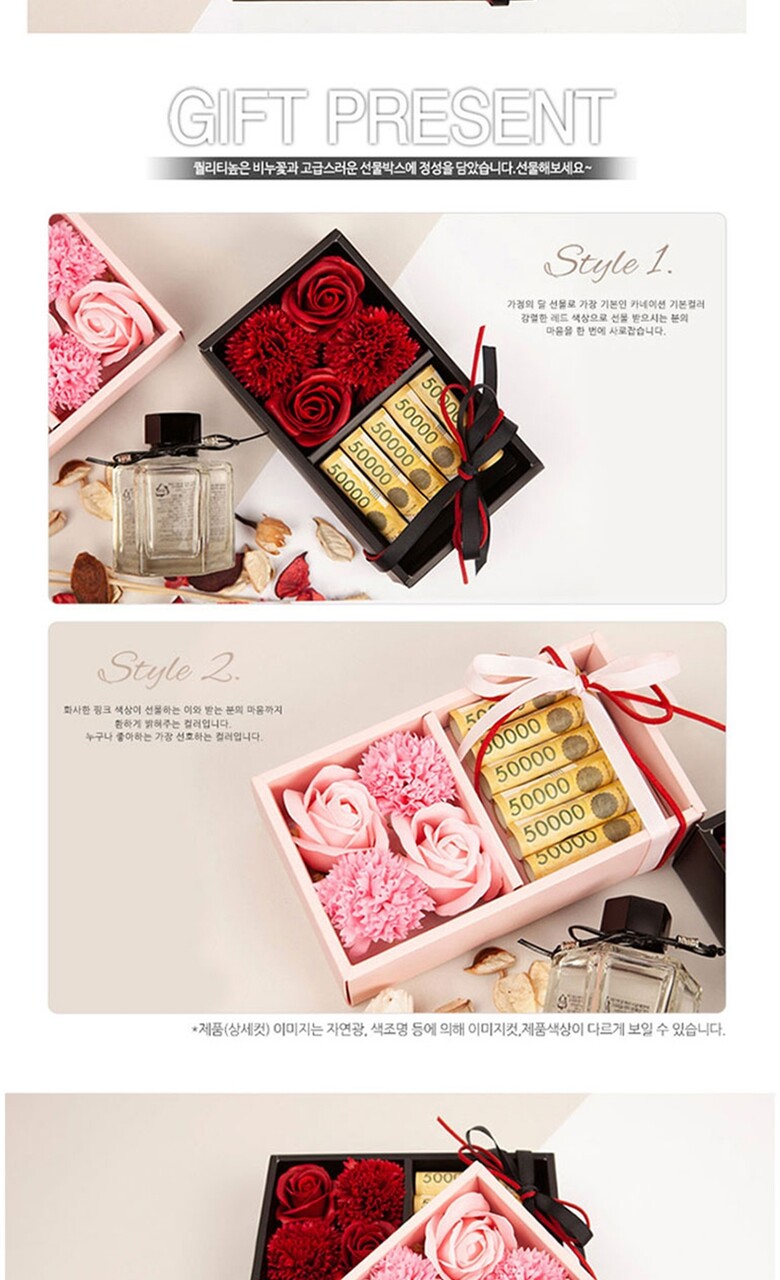[1+1] 어버이날 카네이션 비누꽃 용돈박스 2세트(레드+핑크 세트)