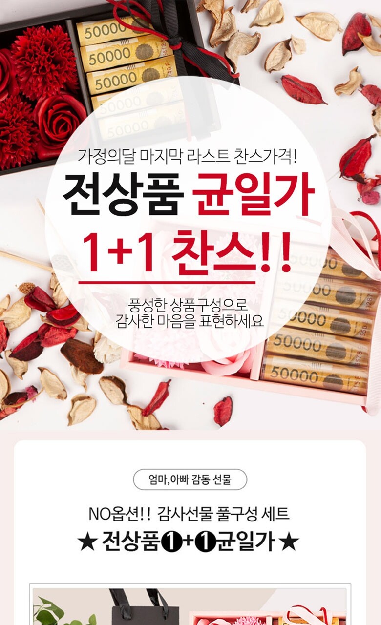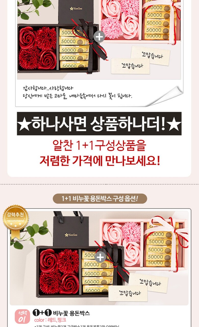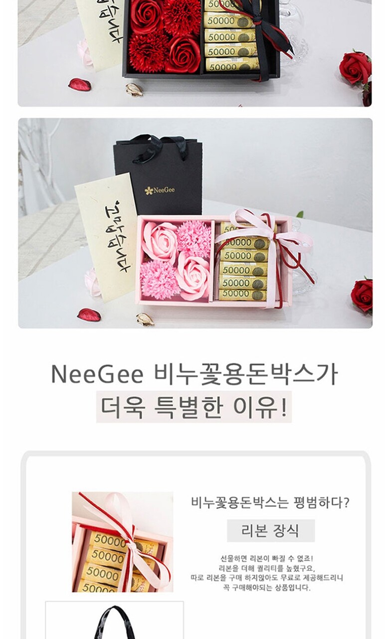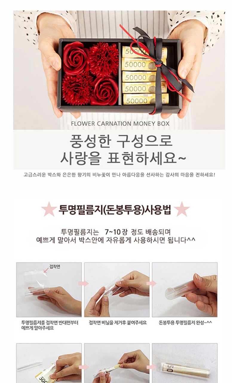[1+1] 어버이날 카네이션 비누꽃 용돈박스 2세트(레드+핑크 세트)