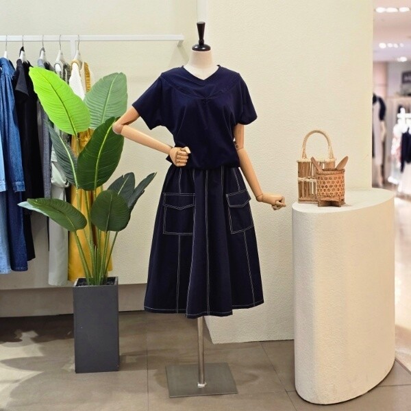FM5C3OP31194_스티치 포켓 브이넥 원피스