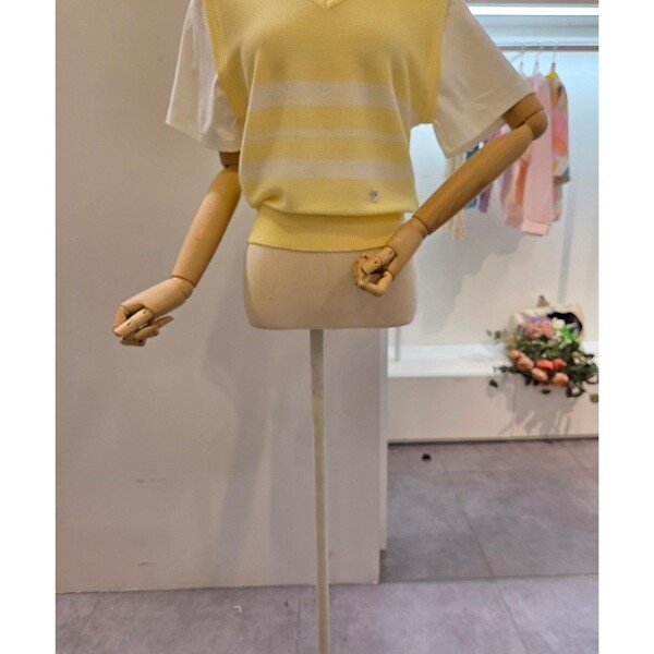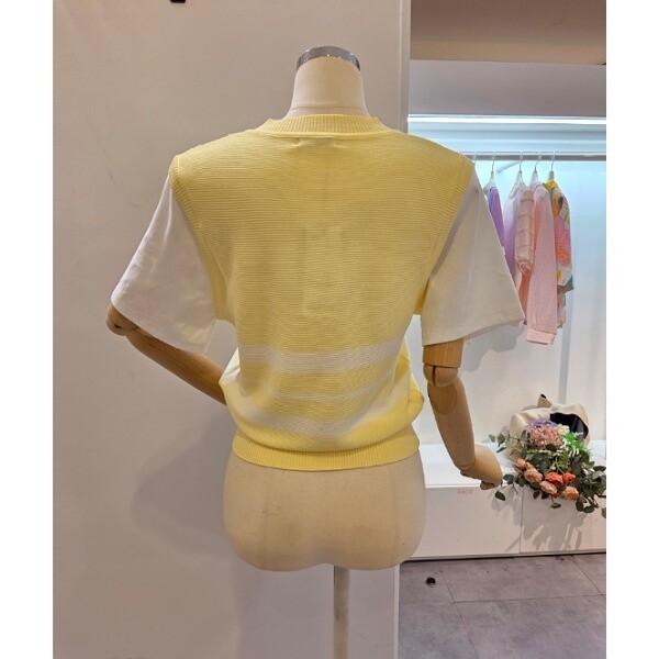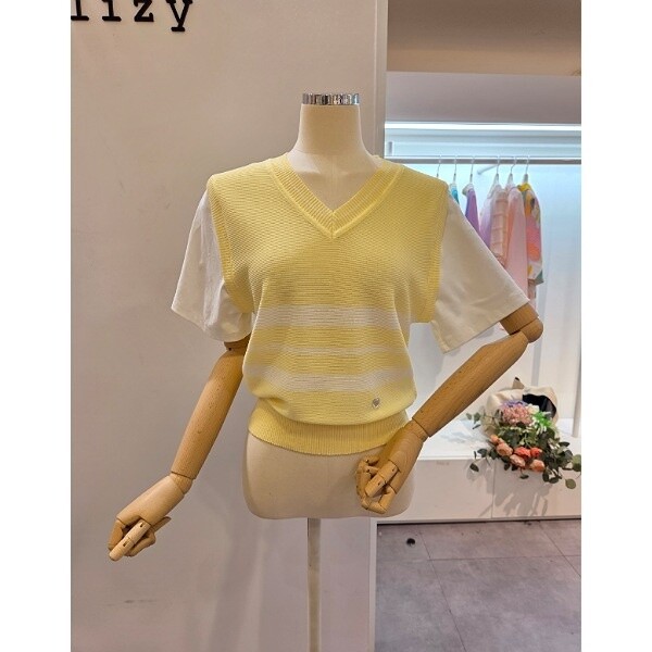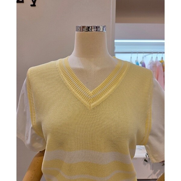 CP3WKT23_옐로우화이트 배색 니트 조끼