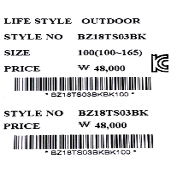 1. 품명 및 모델명 | 블랙 스트라이프 티셔츠(BZ18TS03BK) |