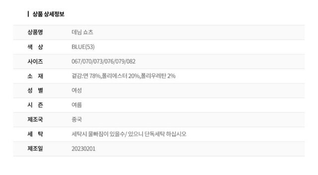| 1. 제품 소재 (섬유의 조성 또는 혼용률을 백분율로 표시, 기능성인 경우 성적서 또는 허가서) | 상품상세참조 |