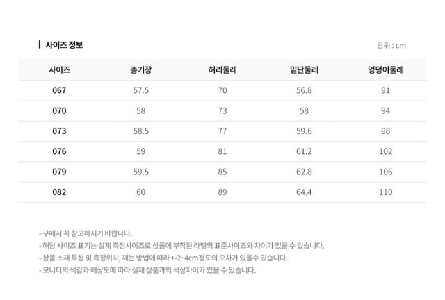 | 6. 세탁방법 및 취급시 주의사항 | 상품상세참조 |