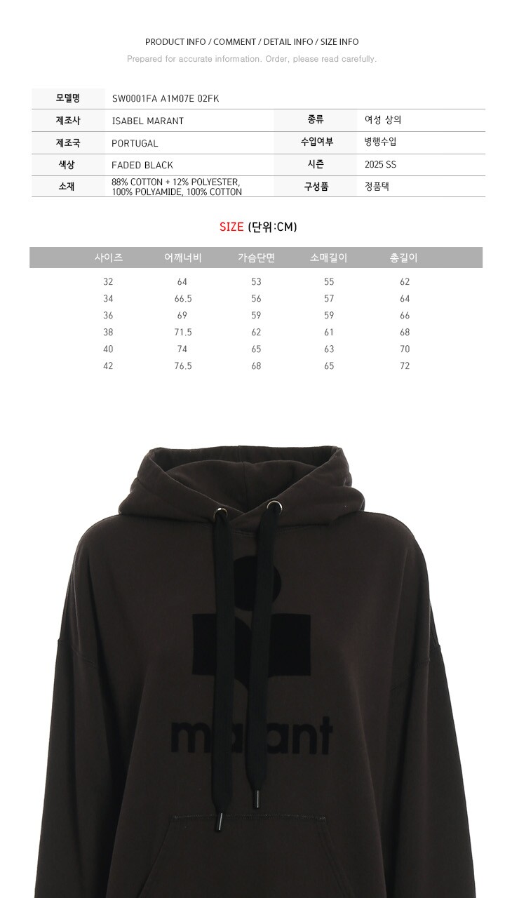 이자벨마랑 25SS MANSEL 로고 후드티 페이드블랙 SW0001FA A1M07E 02FK