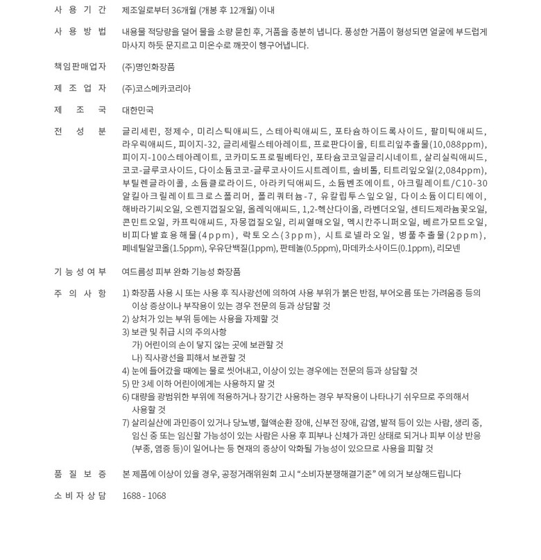 | 8. 기능성 화장품의 경우 화장품법에 따른 식품의약품안전청 심사 필 유무 | 상품상세참조 |