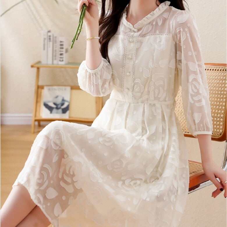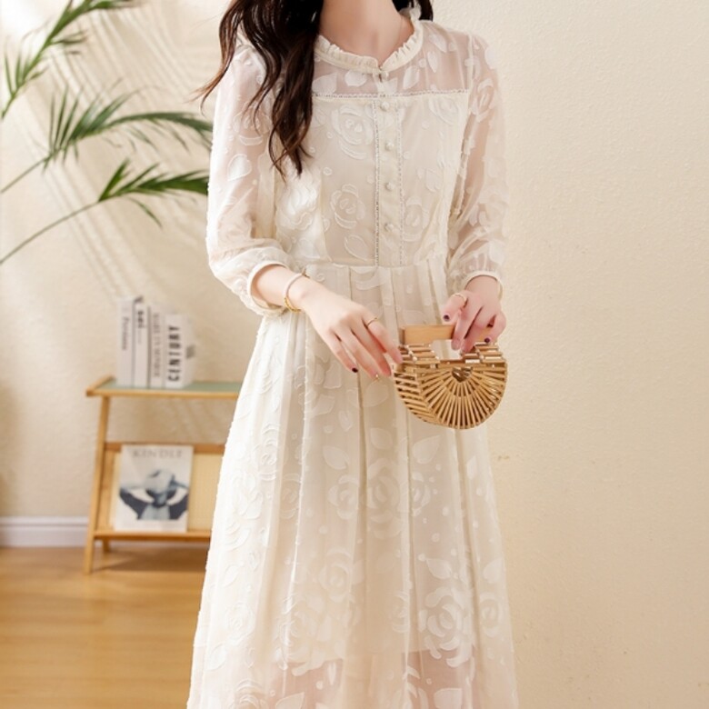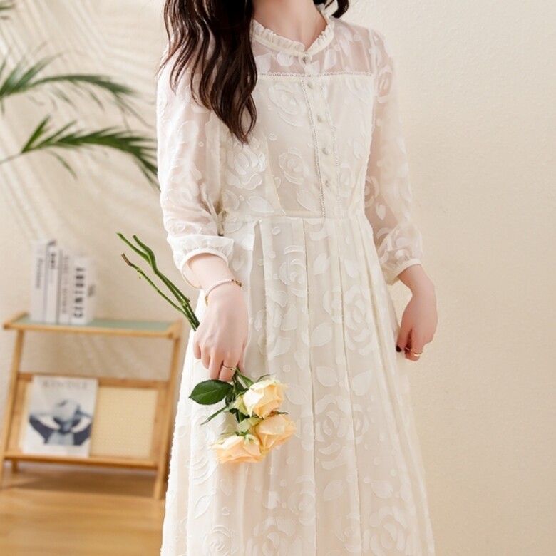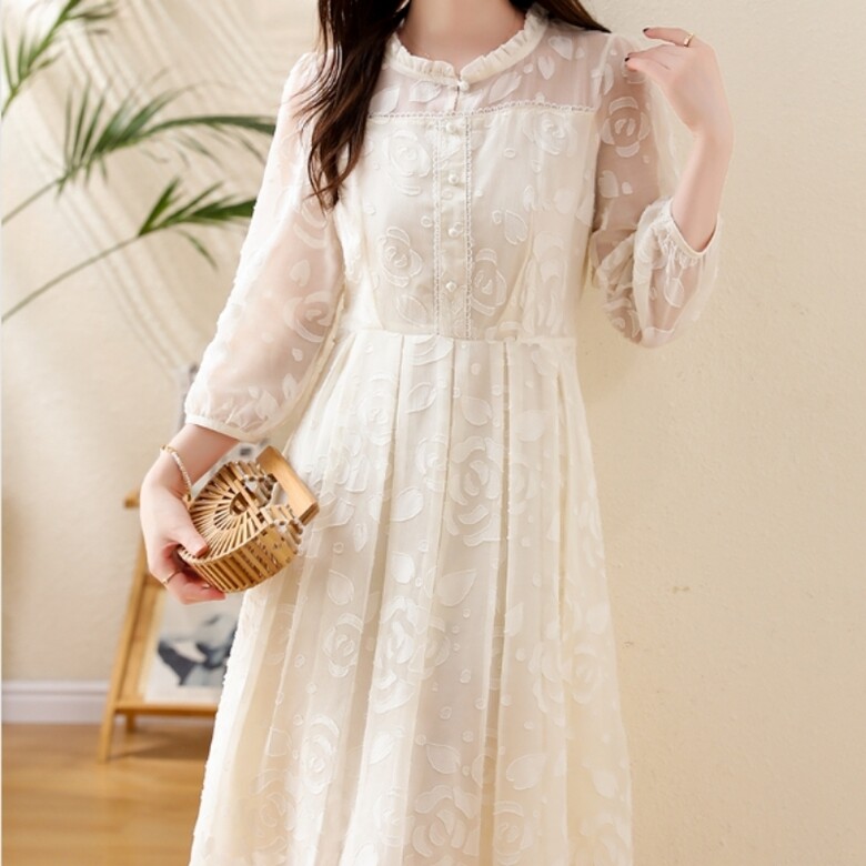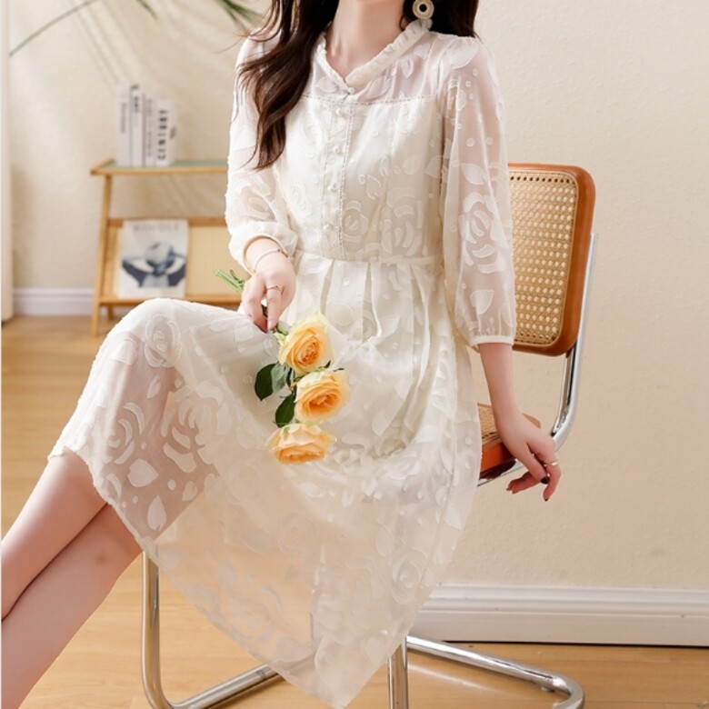 플라워 자수 레이스 미디엄 원피스_250405_SY22