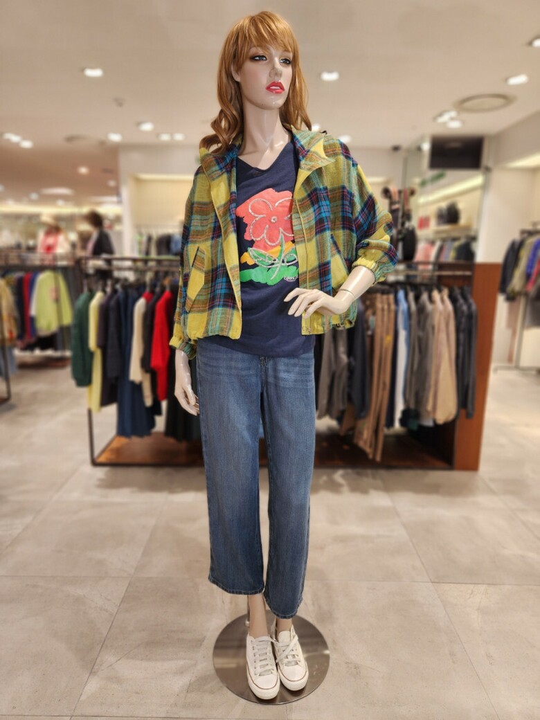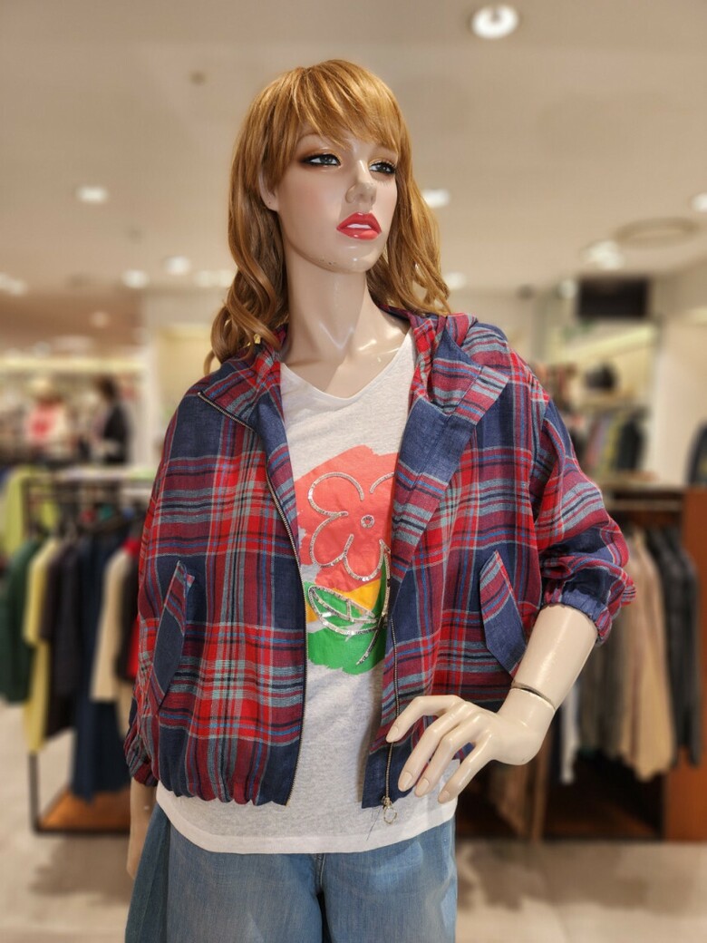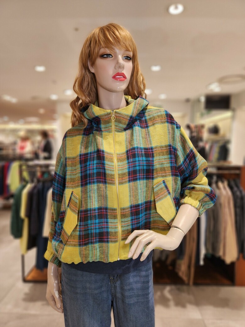 베네통 체크 후드 린넨점퍼 BAJPB1531