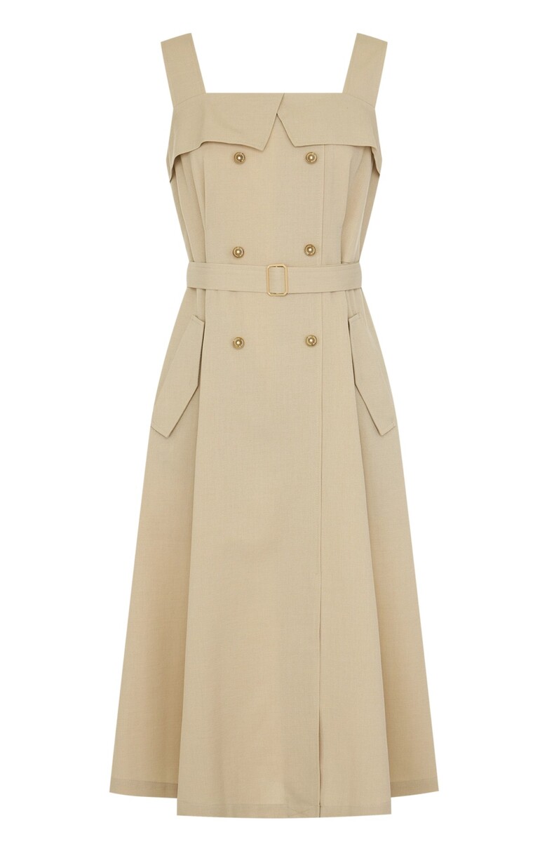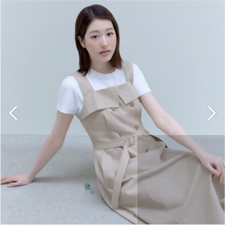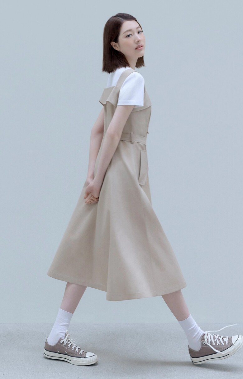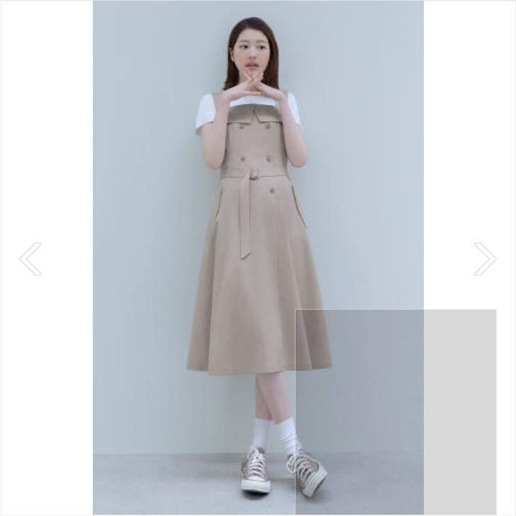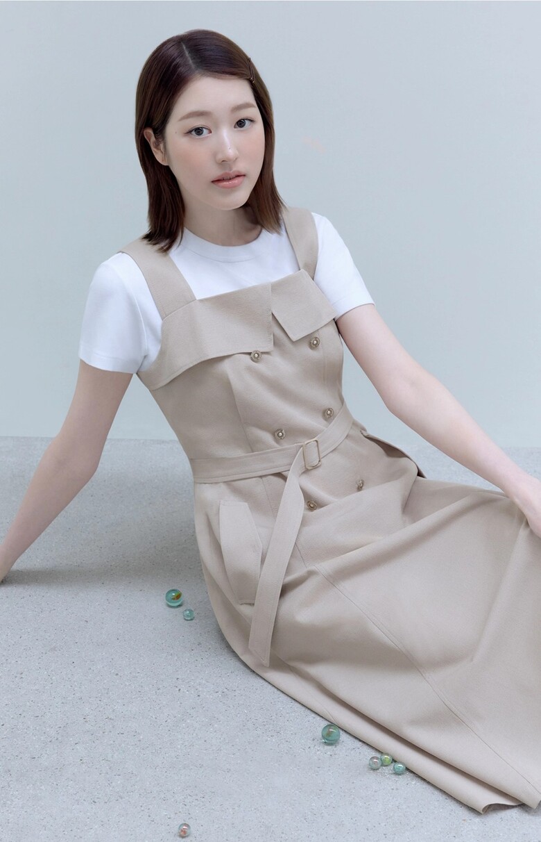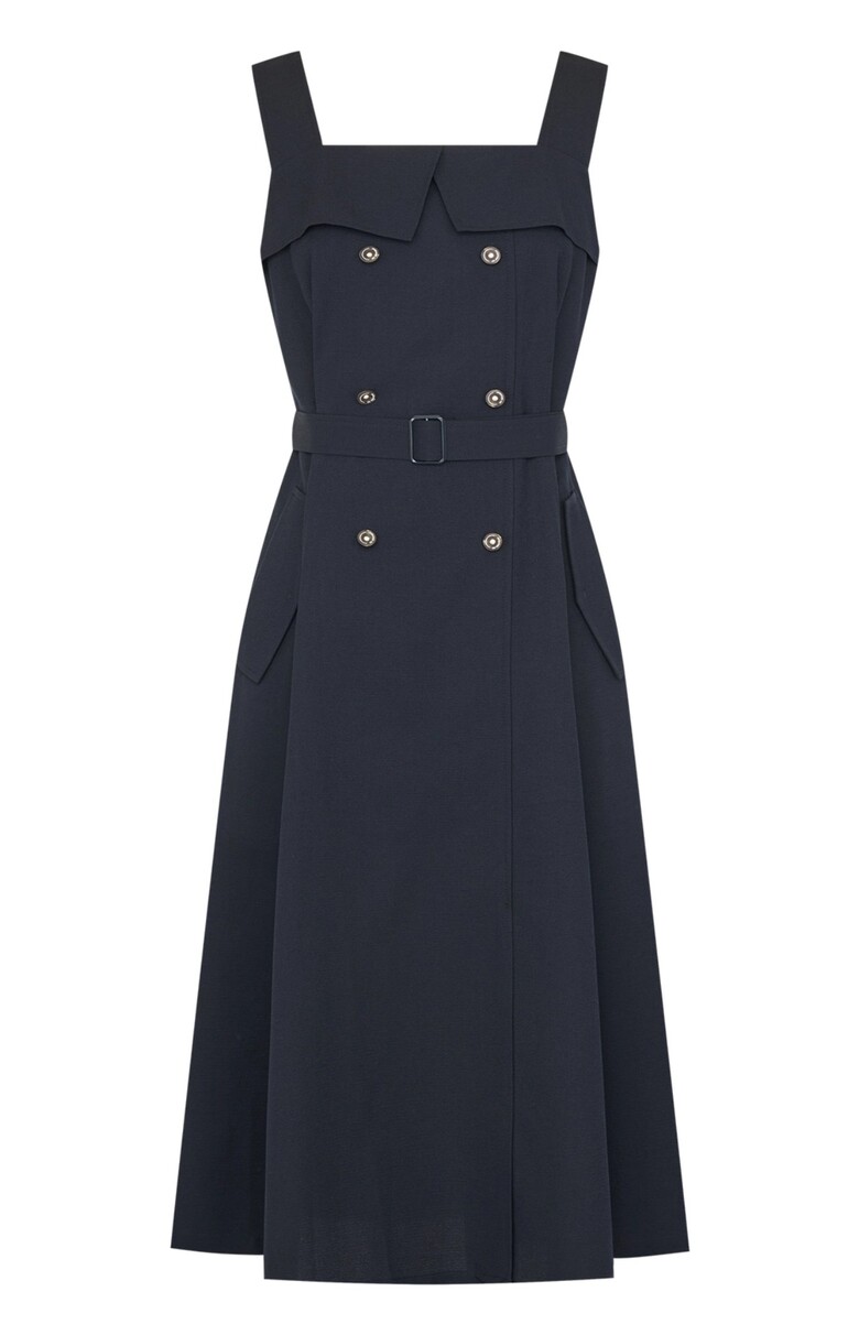 더블버튼 장식이 돋보이는 롱한 기장감의 원피스입니다.