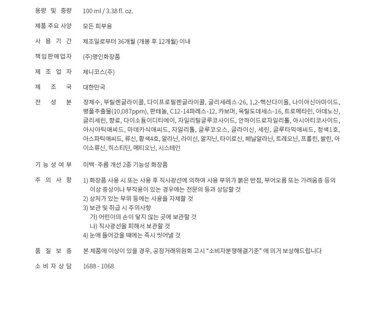 8. 기능성 화장품의 경우 화장품법에 따른 식품의약품안전청 심사 필 유무 | 상품상세참조 |