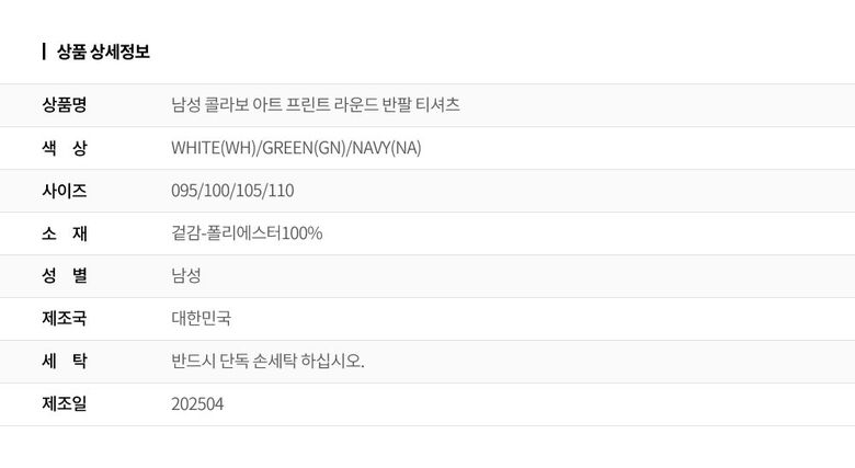 | 2. 색상 | 색상:WHITE(WH)/GREEN(GN)/NAVY(NA) |