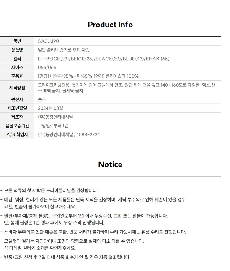 6. 세탁방법 및 취급시 주의사항 | 상품상세참조 |