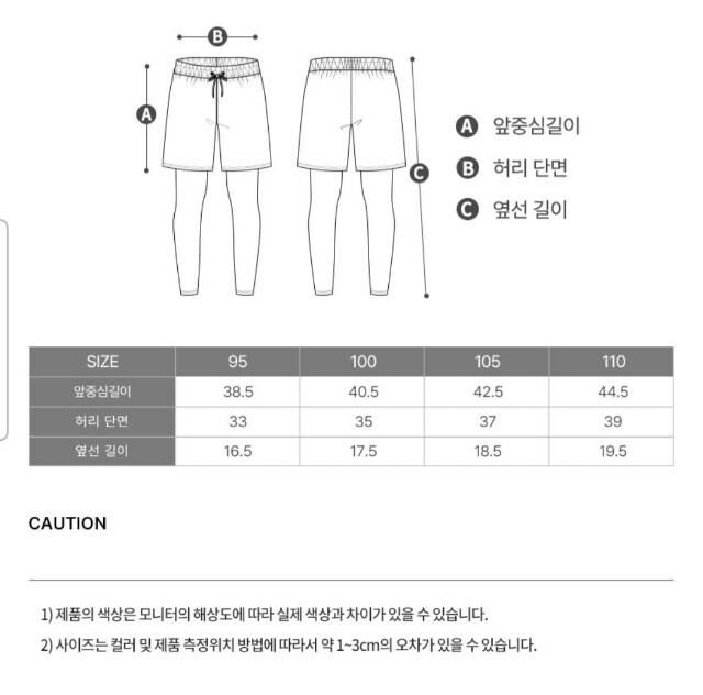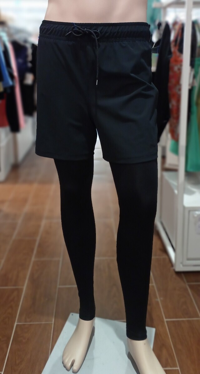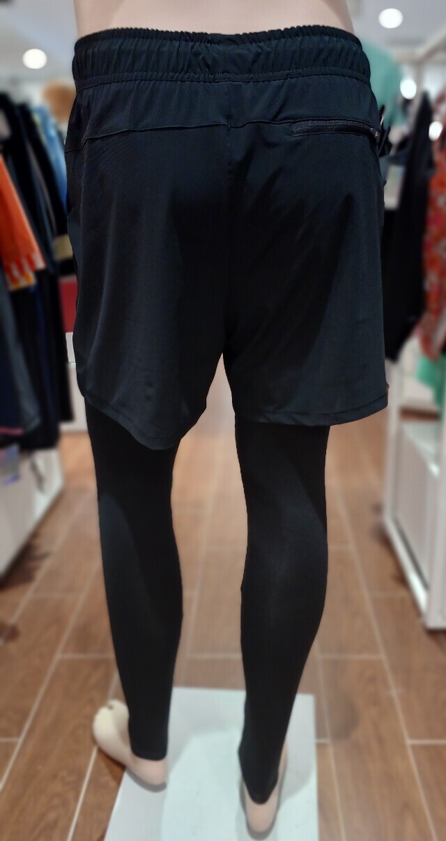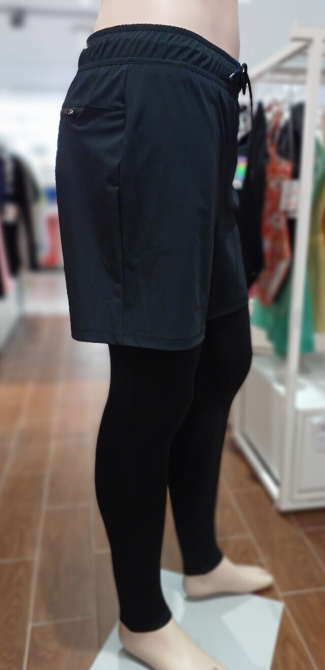 43cm 기장의 반바지는 우븐 소재 사용한 스타일로 안감은 매쉬 처리 되어 있으며 레깅스는 냉감과 통기성이 좋은 9부 레깅스 팬츠입니다 .