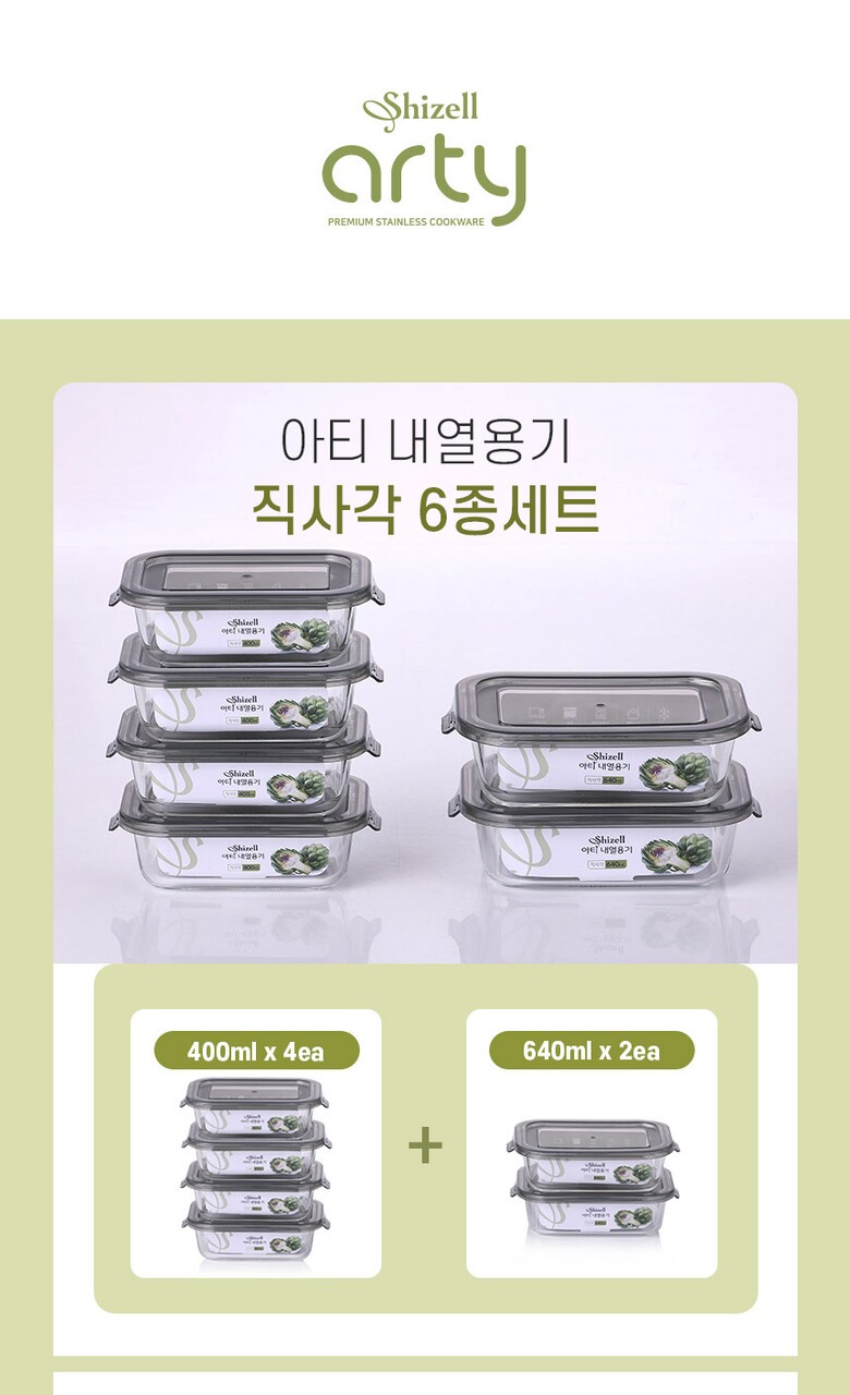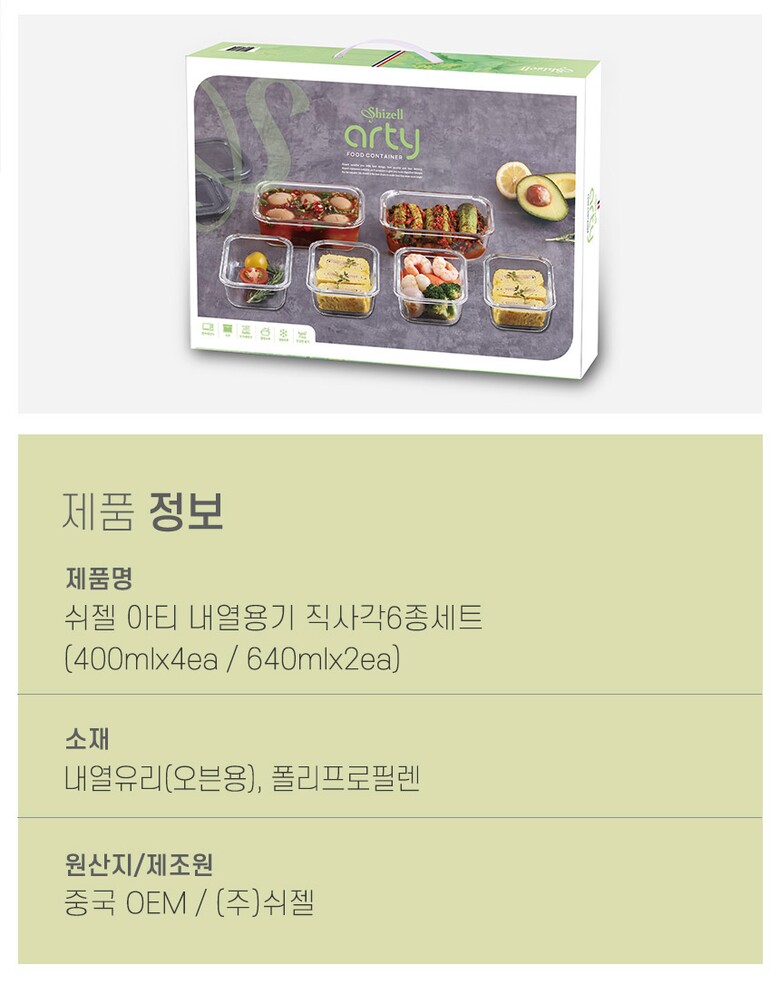 쉬젤 아티 내열용기 직사각6종세트 (직사각400ml*4ea+640ml*2ea)