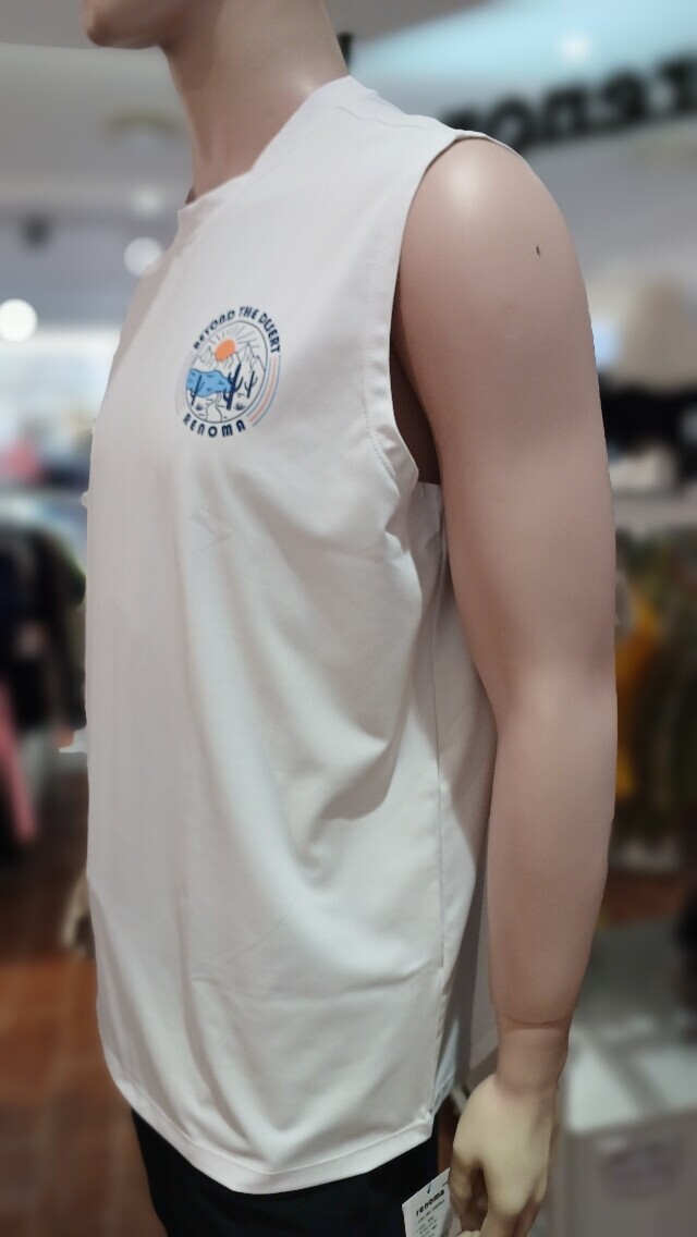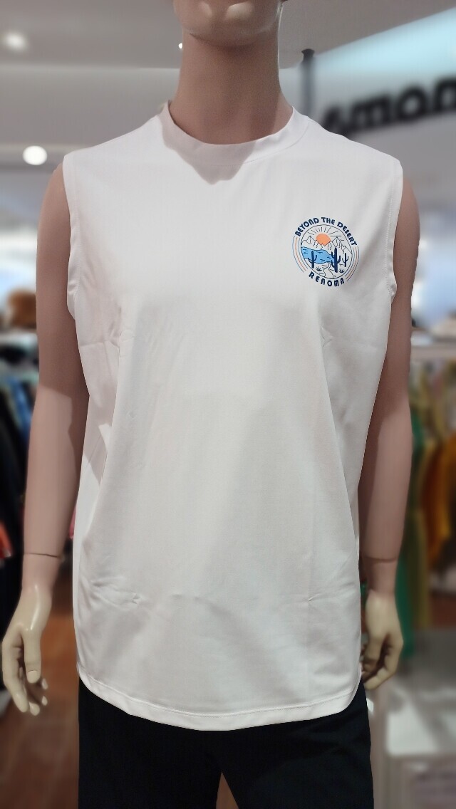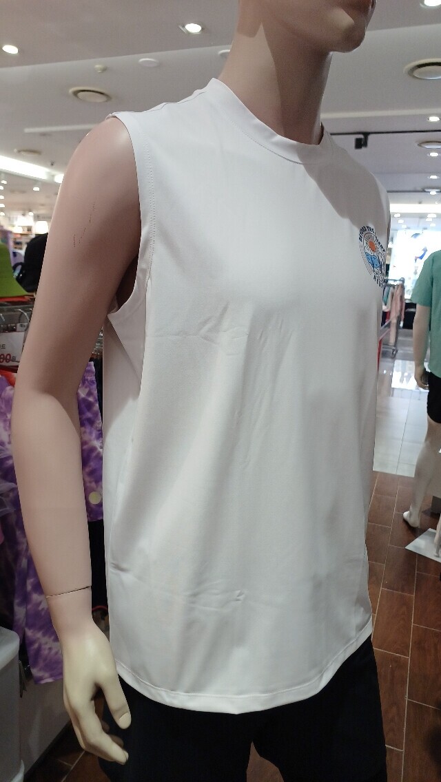 어깨선을 충분히 덮어 주고 여유 있는 핏으로 다양한 연령대 착용 가능하며 가볍고 흡한속건 기능이 있으며 일상 생활에서도 무난히 착용하기 편한 루즈 핏 슬리브리스 티셔츠입니다.