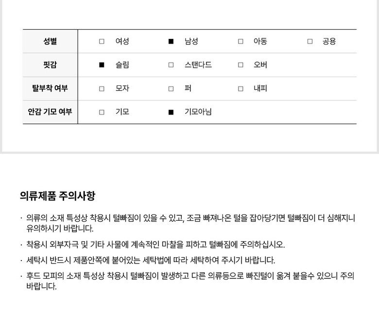 6. 세탁방법 및 취급시 주의사항 | 반드시 라벨에 부착된 세탁방법으로 세탁해 주십시오. |